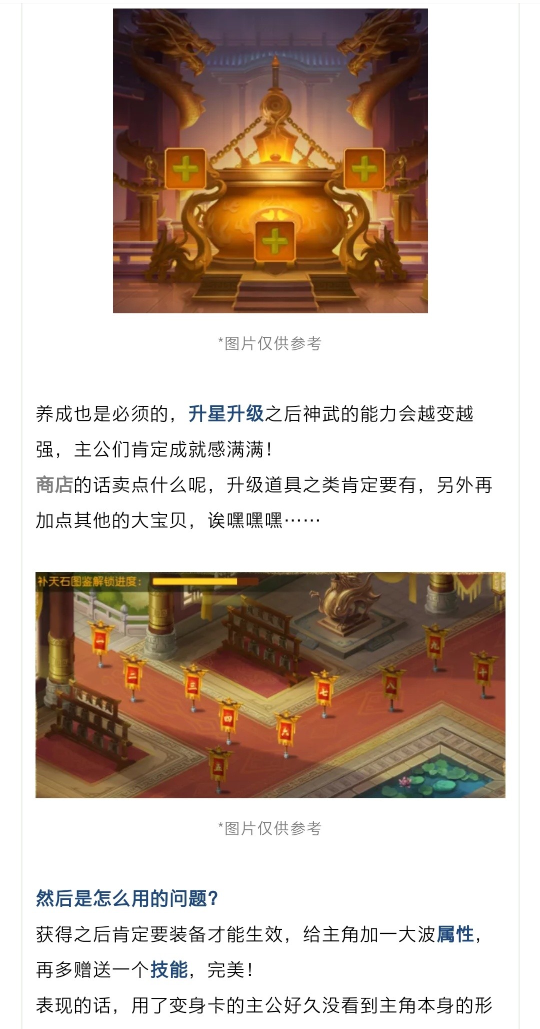 有了新装备——神武,自然需要升级,升星咯。目前这神武材料怎么获取不知道,估计会像命格一样,活动掉落,然后各种竞拍。