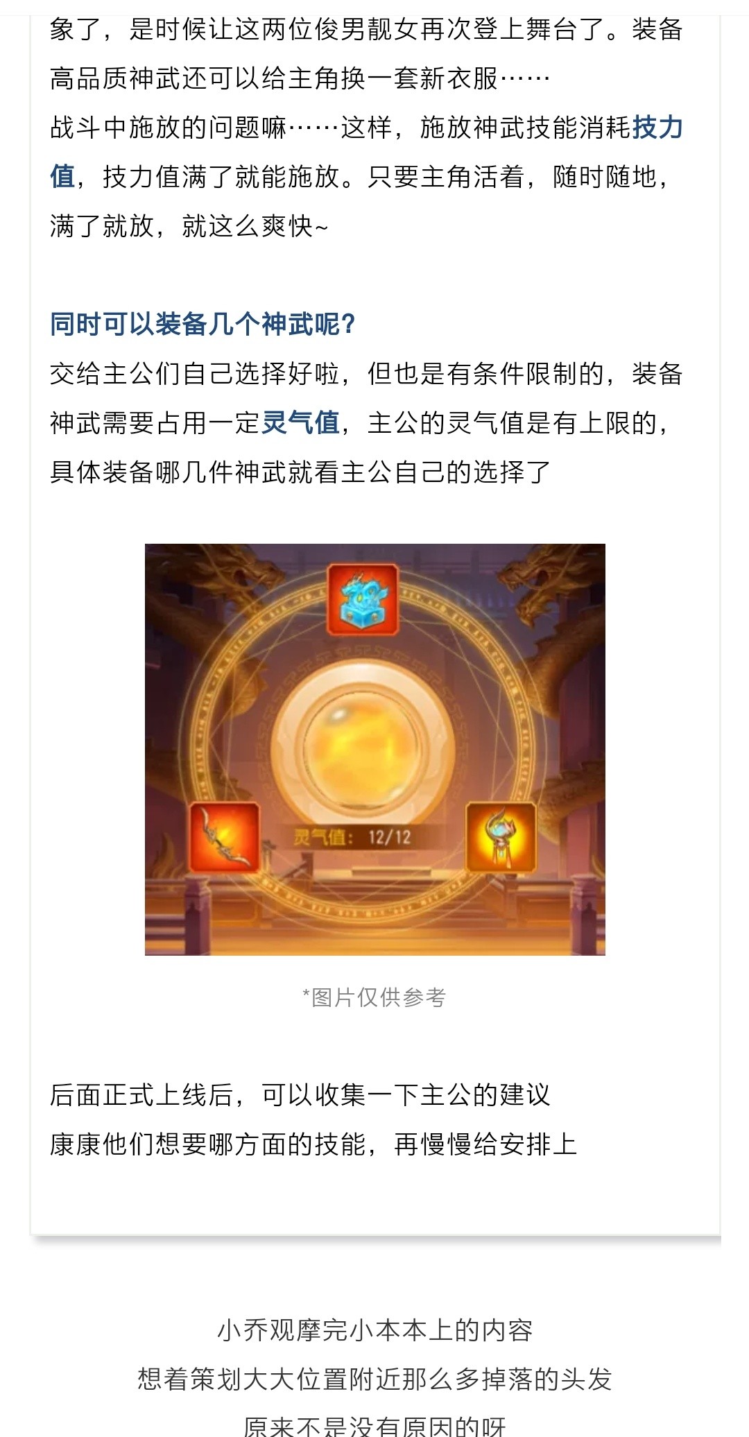 装备神武需要主角的灵气值,这灵气值怎么获得又是个新玩意。