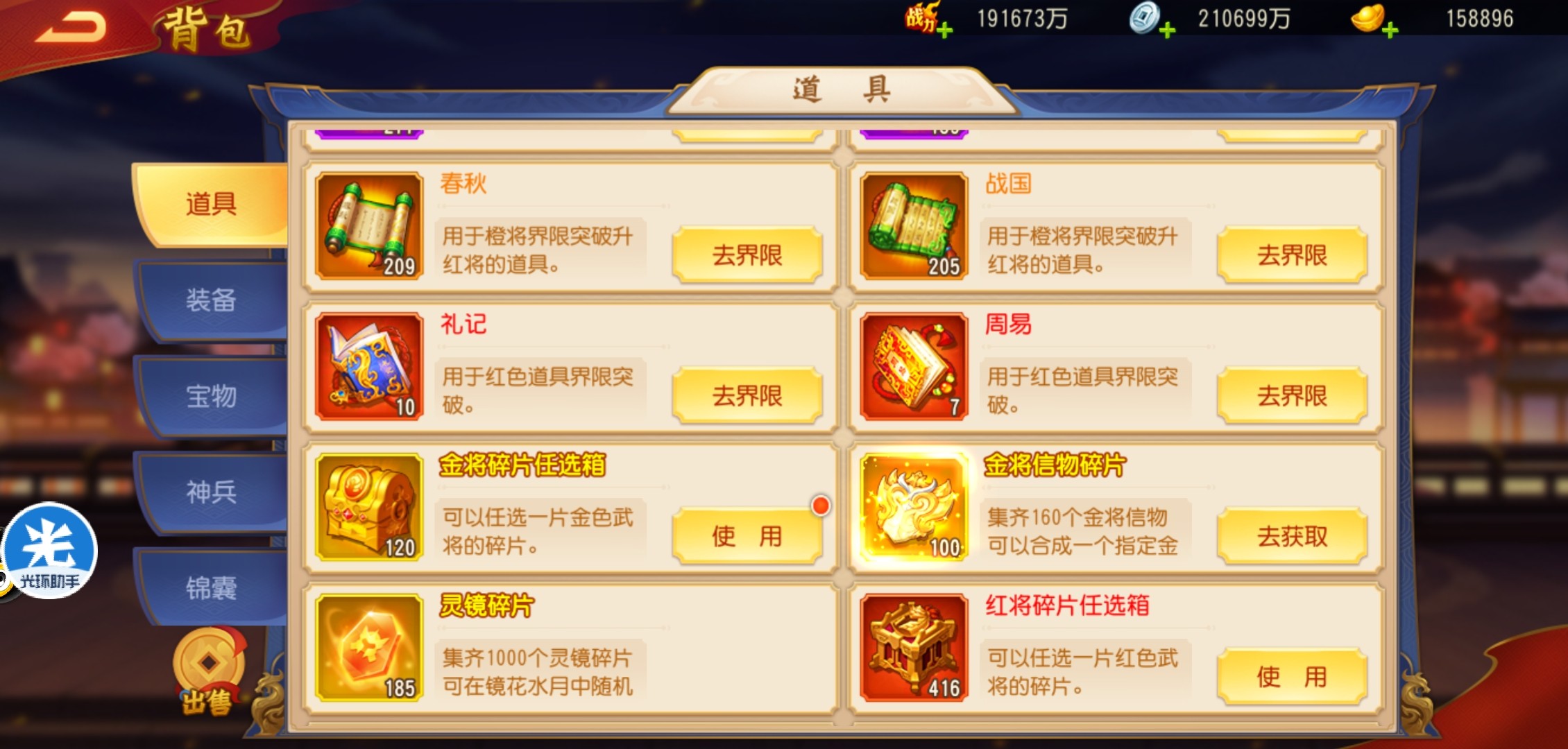 常驻也不会像抽武将那样一天给你几次啊,不一样得用道具