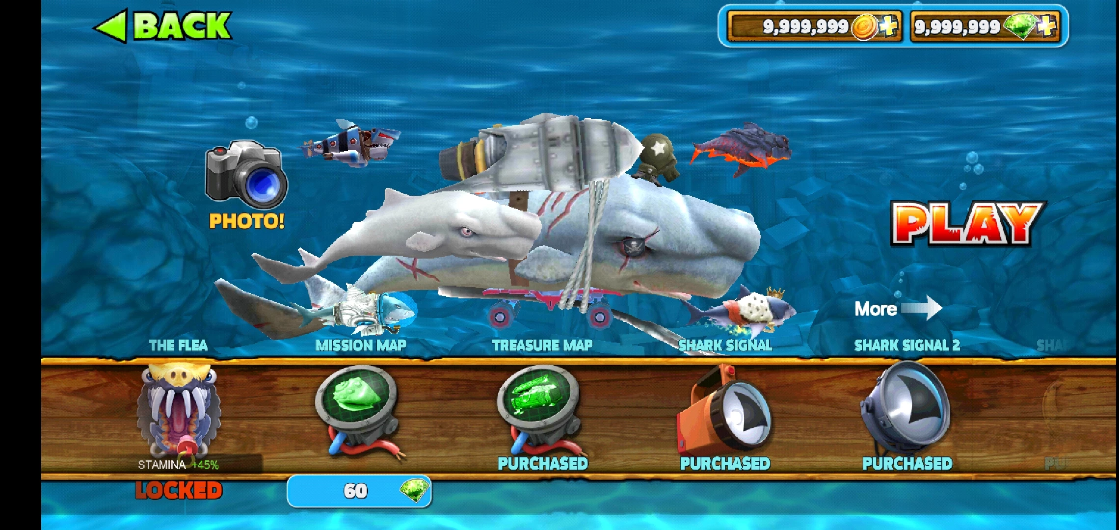 进入游戏后,数种鲨鱼玩家都可以任意挑选,但前提是你有足够的金币和钻石,同时玩家还可以通过游戏获得经验让自己的鲨鱼成长,并将游戏中获取的金币用来提升鲨鱼的咬合力,速度和加速器效果,小编在这里提醒大家:属性的加成是针对到每一条鲨鱼的,并不是玩家拥有的鲨鱼全部可以获得提升,这就需要大量的金币让玩家得以快速成长了。