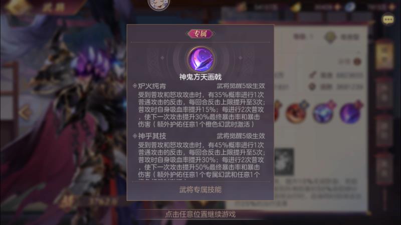专武浅析:神鬼方天画戟,在三个阶段会获得不同程度的单词条强化(貂蝉也是一样的情况 简单理解就是 只有一个被动 别人的专武一般都是两个被动)