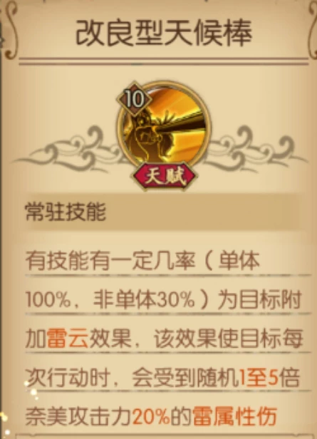 天赋:改良型天候棒