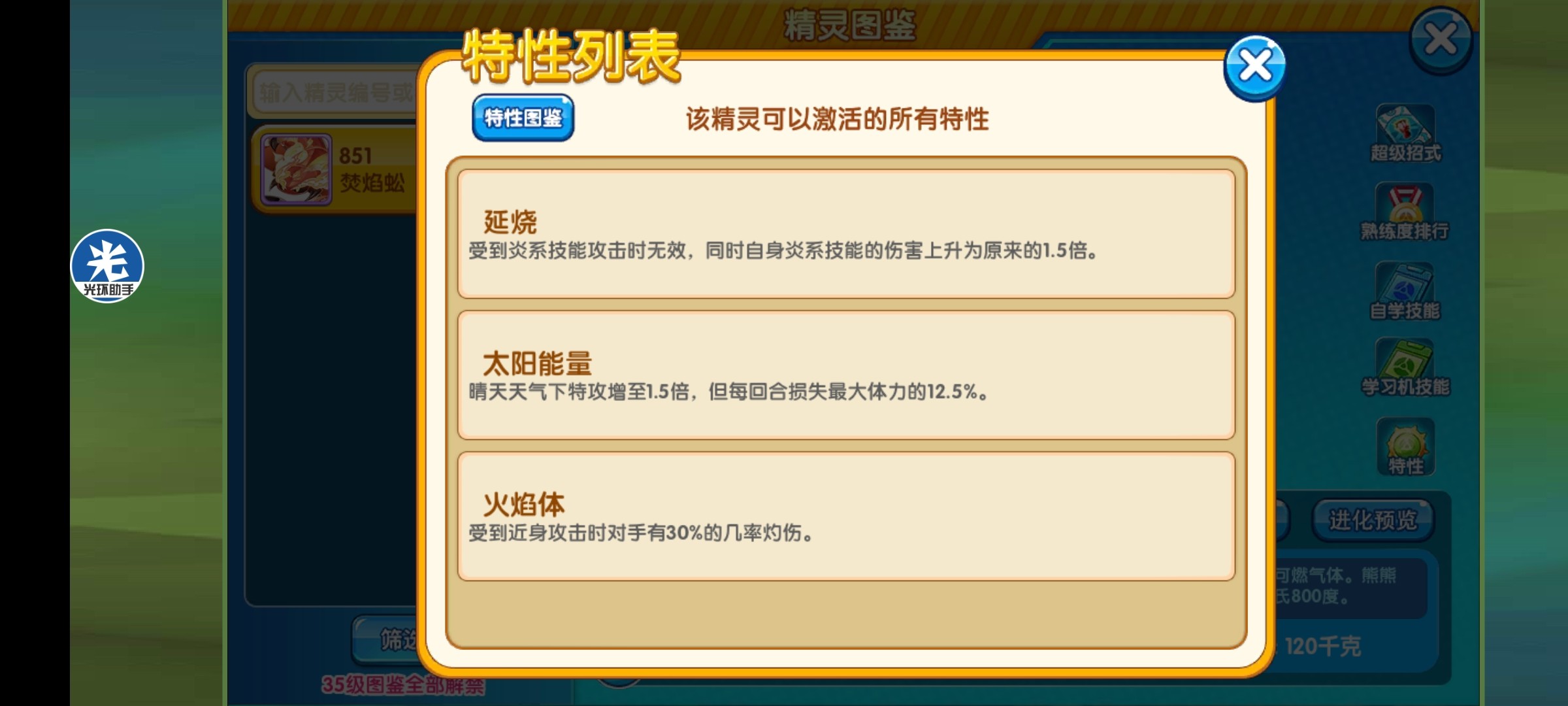 ②烈焰火爆核心技能,有着110的本系威力,极巨后威力高达140,还能释放出5回合晴天,增强火系输出,弥补两倍弱水的弱点;