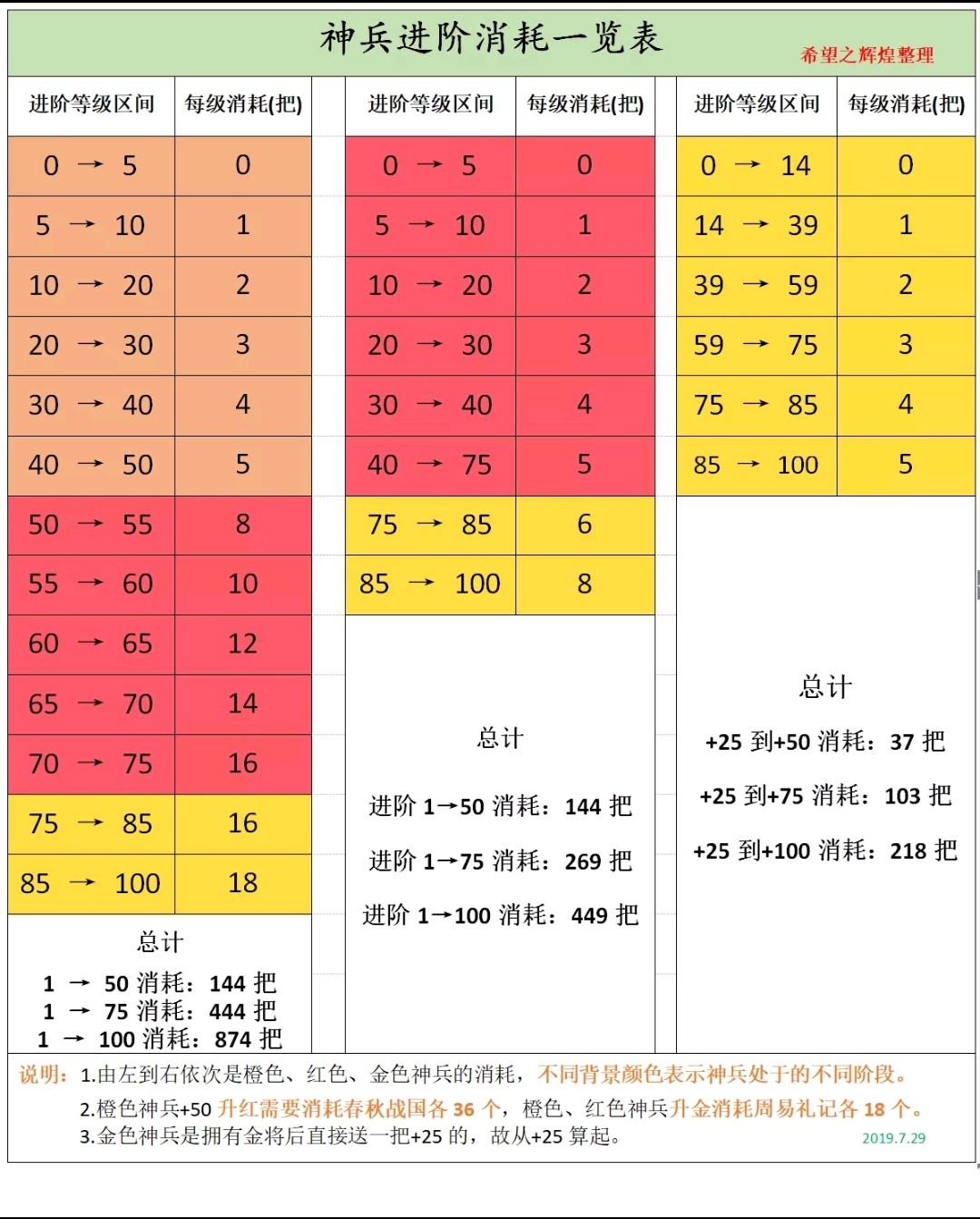 首先对于主力输出来说,神兵基本都是高等级进阶,且不常置换使用的,对于这些武将的神兵更新改动会有影响,但是也没所谓,正常保持住进阶等级就行了,即使是后期换主力输出武将,神兵也可以整把置换过去。但是需要注意的是,超出+100部分的全部重生为单把的基础材料,暂时不要手残去进阶。2、更新前如果我不重生,会有多少资源亏损?