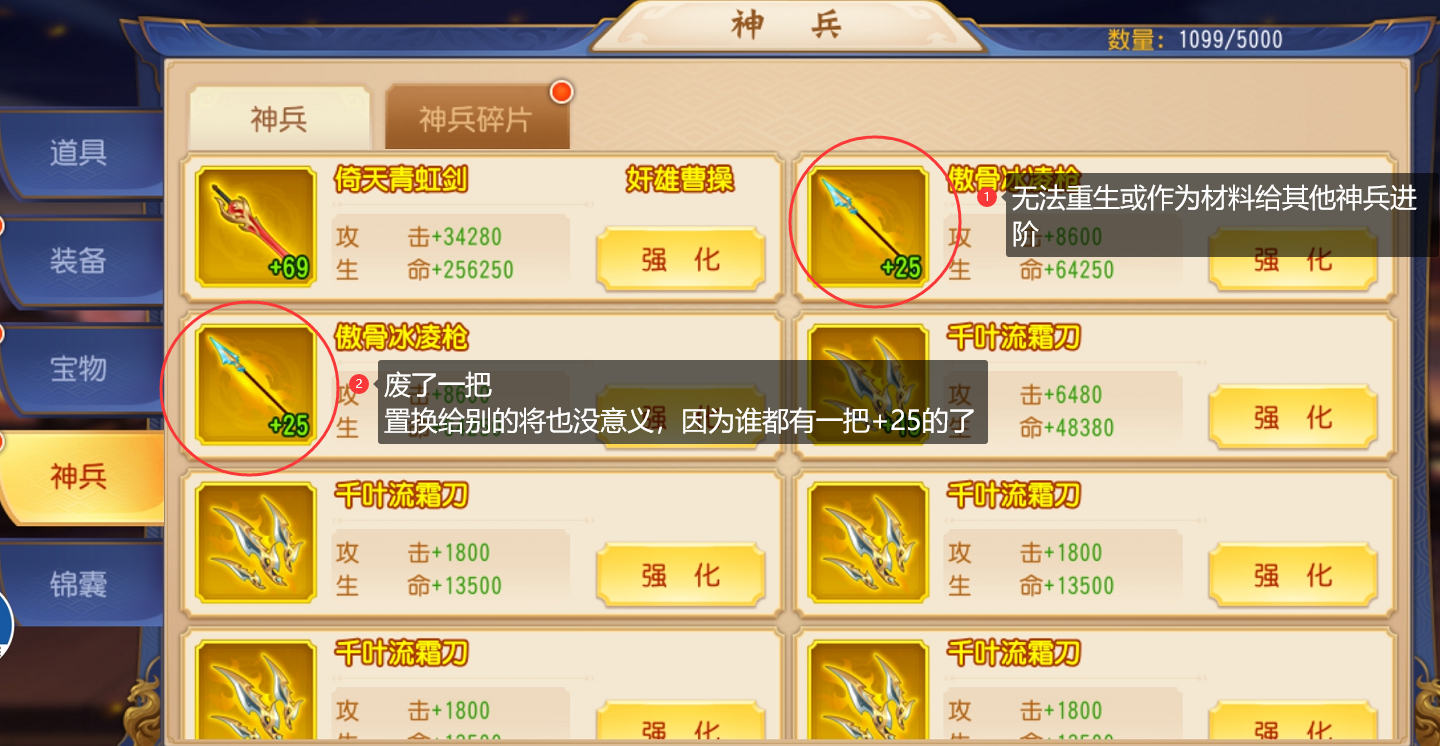 😎策划想对玩家说:“我送你一把+25的金神兵,你养这个武将就能用,你拿去养别的武将我就不给你用”!