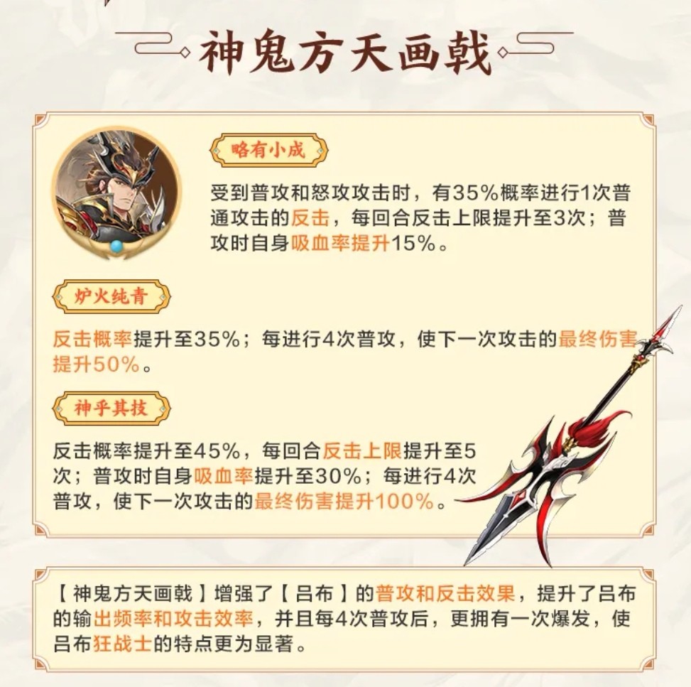 暴击爆伤二换一 其实是好事 算上原本五火的被动系数 吕布的强化普攻终伤系数上限能达到235% 可能大家不太了解什么概念 简单理解就是 终伤的输出上限比原本的暴击爆伤要高 所以大家也不用讨论吕布是不是削弱了这一说法