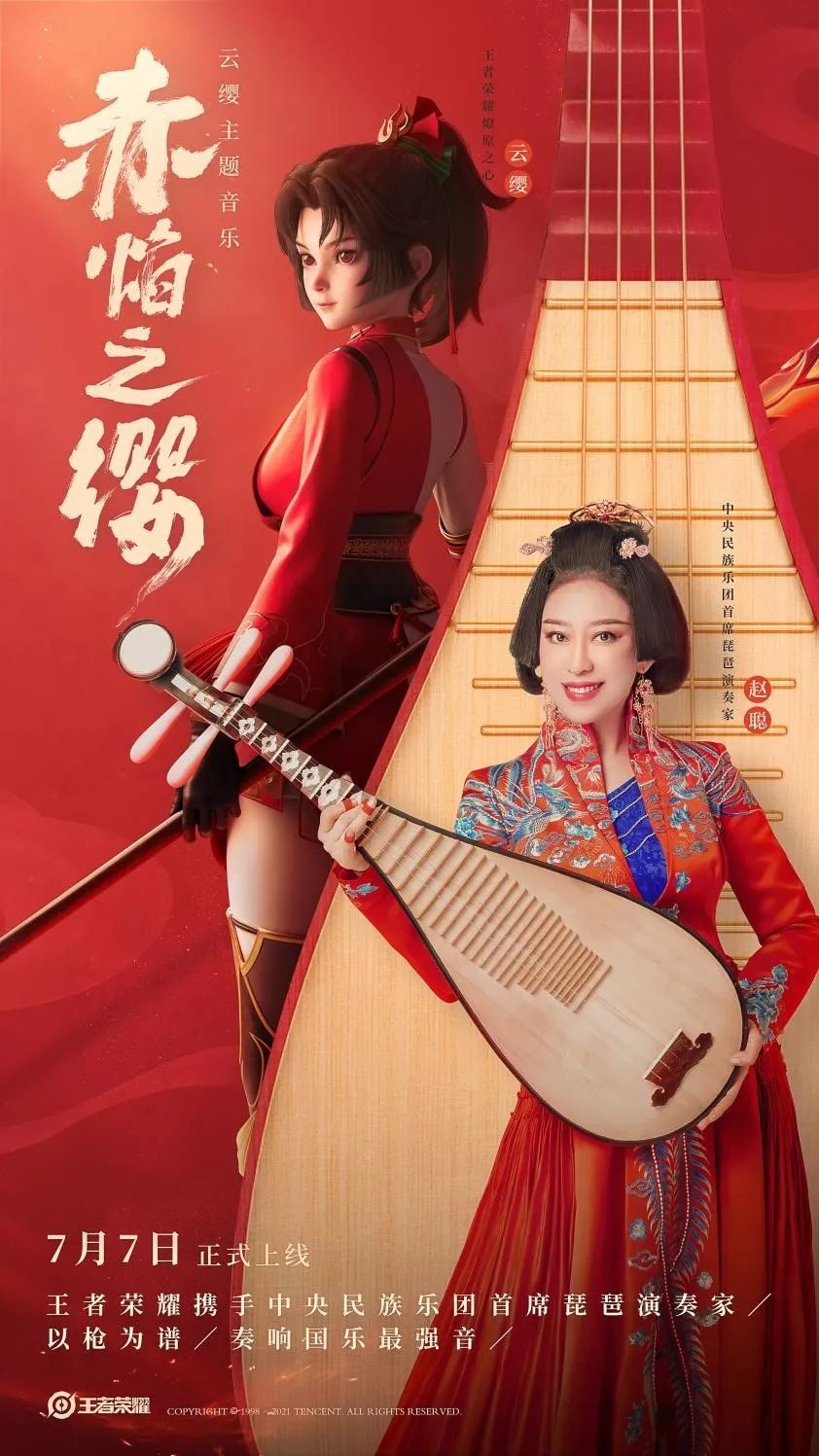 王者荣耀新英雄云缨游戏原声音乐定名为《赤焰之缨》,用了“大弦嘈嘈如急雨”的琵琶,演绎这位神枪掠火的枪火少女。为云缨创作华彩片段并完整演绎《赤焰之缨》的,正是中央民族乐团首席琵琶演奏家赵聪老师。