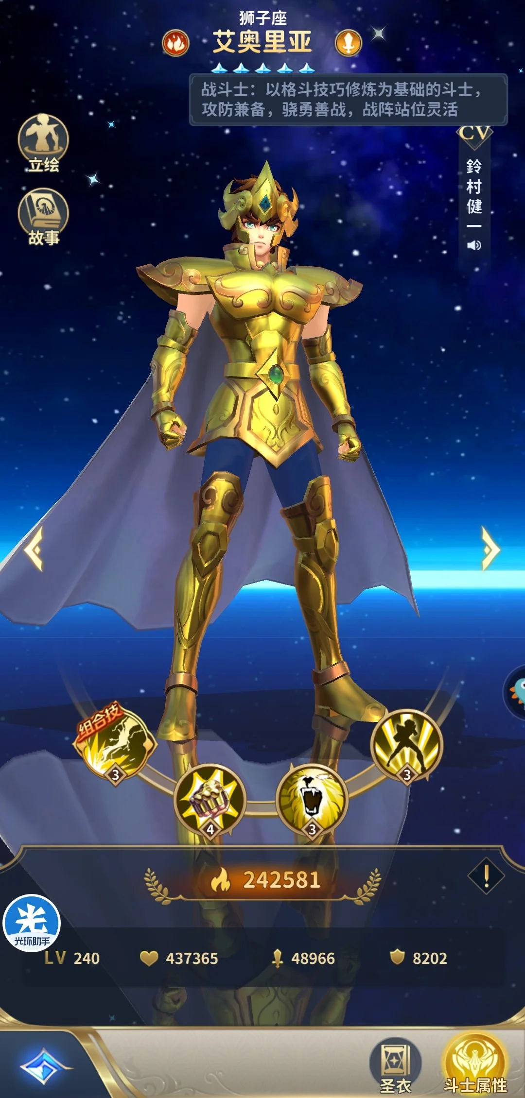 至今鱼头也还记得,在那款手游中 狮子座 艾奥里亚是最牛叉的,大招闪电光速拳可以秒全屏,恰恰这款《圣斗士星矢:正义之战》狮子座也是非常好用的,下面就来聊聊鱼头的游戏经验。