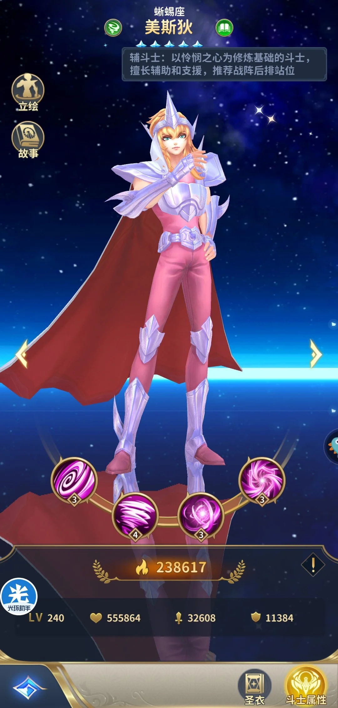 所以第一天积极性超级棒,命还好,白银圣斗士还抽到蜥蜴座 美斯狄(风系)所以这个号在开局的头几天是非常顺利的。