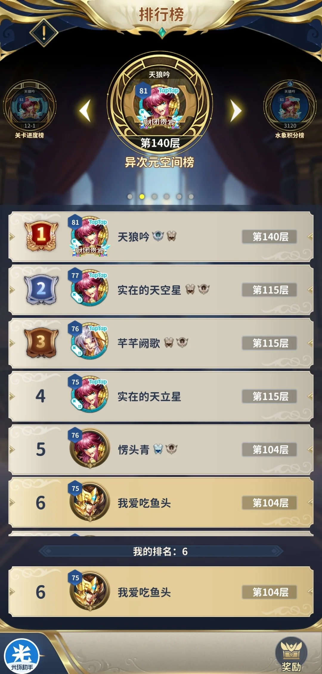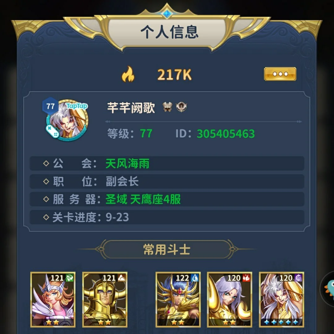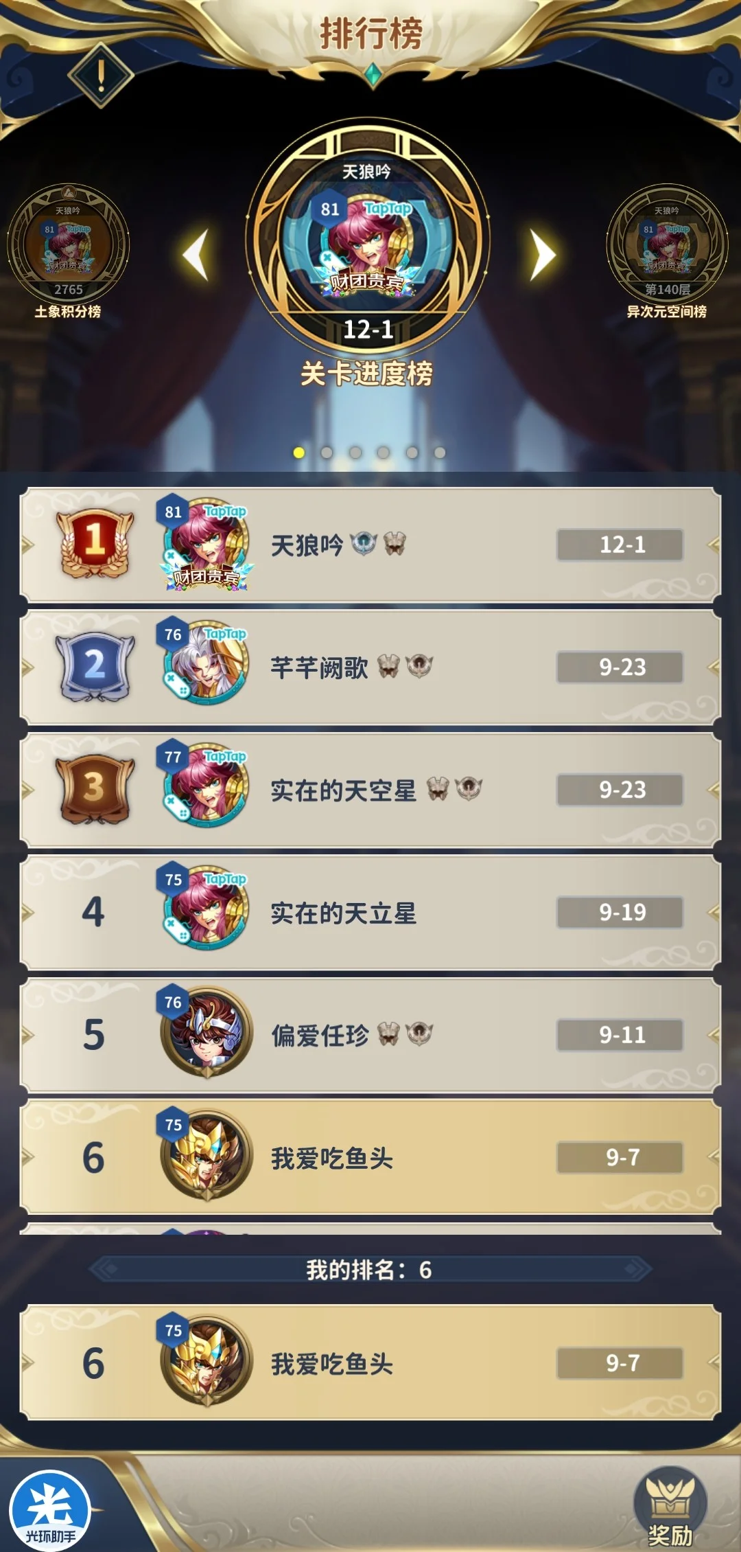 战绩还不错,推图、异次元空间都可以上前十,所以只要狮子座配合一辉加上一个武仙座,用上雅典娜,灵活调整剩下的一个圣斗士,还是非常给力的。