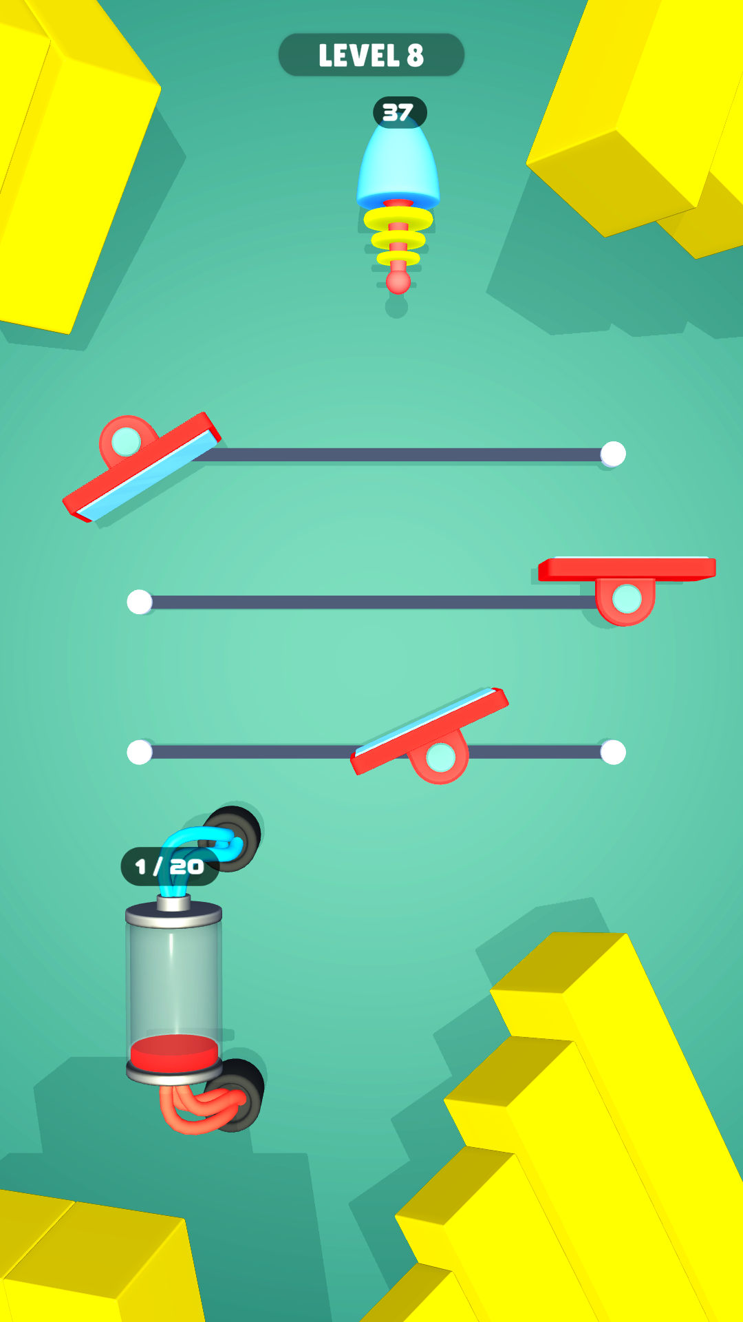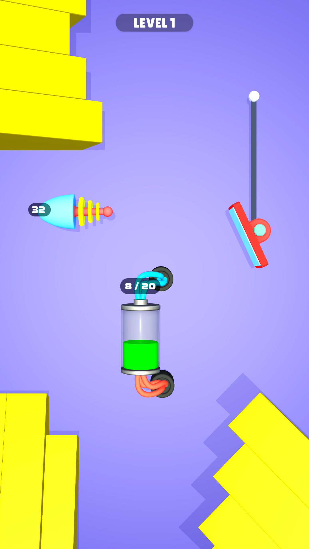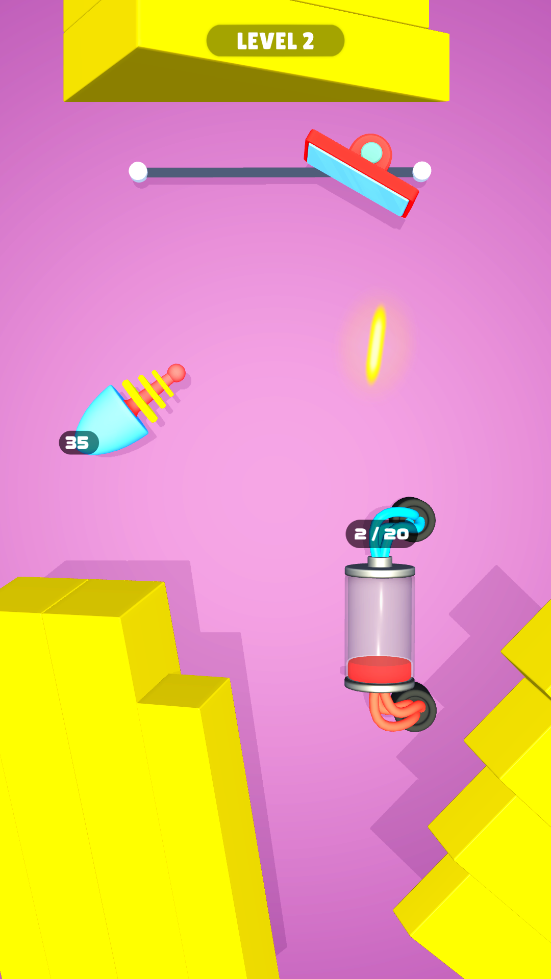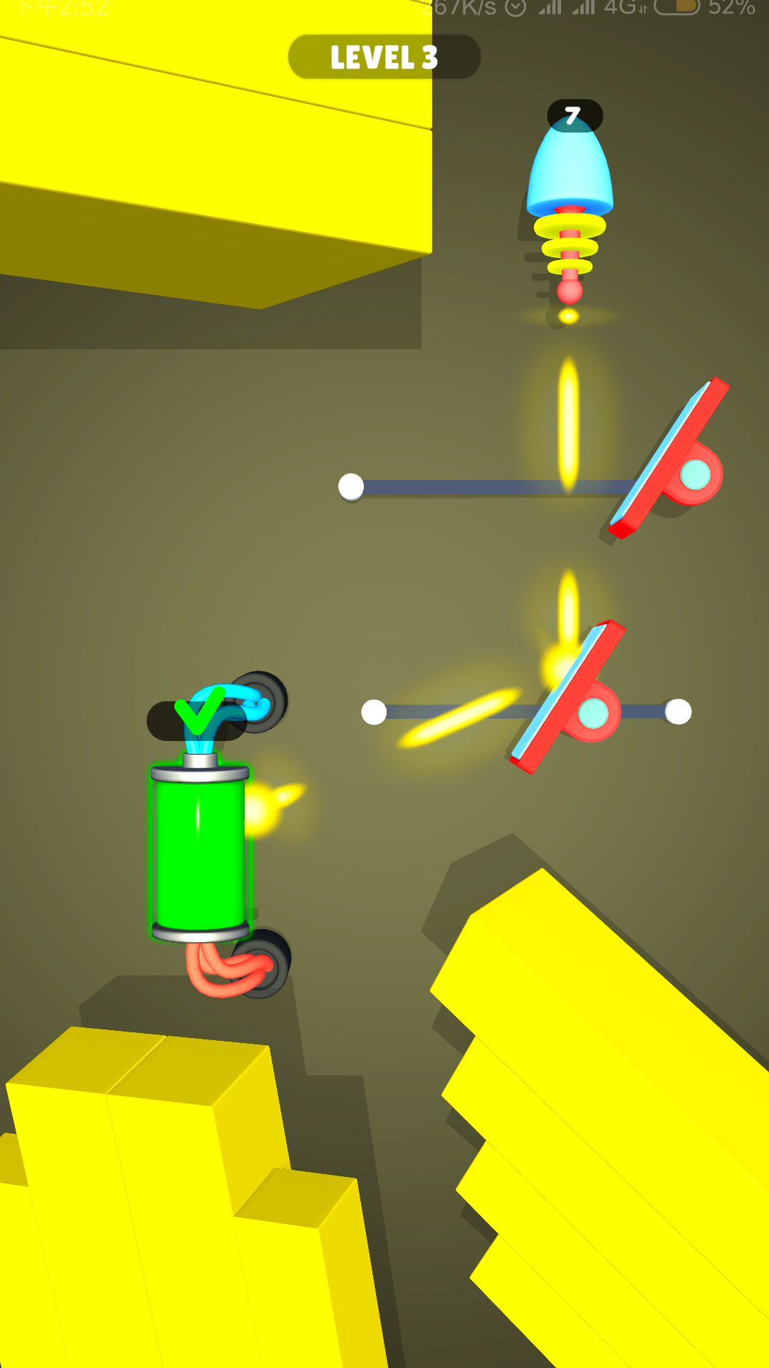 前几关只有一面镜子,所以控制好角度,光线只需经过一次反射即可打在电池上,电池需要接收20次光的照射才能充满,可是灯泡发射的光束数量也只有40次。换言之,游戏给予玩家找寻角度的机会也就最多20次,超过这个数将无法为电池充满电,任务失败。