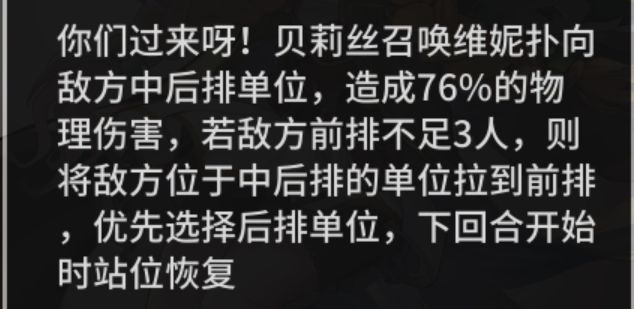 搭配原理:小熊先手释放技能,将敌方后排的敌人拉入前排,由于风笑天只能对前排和单体目标造成伤害,若敌方前排只有一人/或敌方水母在场,风笑天的输出会非常乏力,将后排敌人拉入前排,尽可能的保证前排有三个敌人,达到风笑天输出最大化。