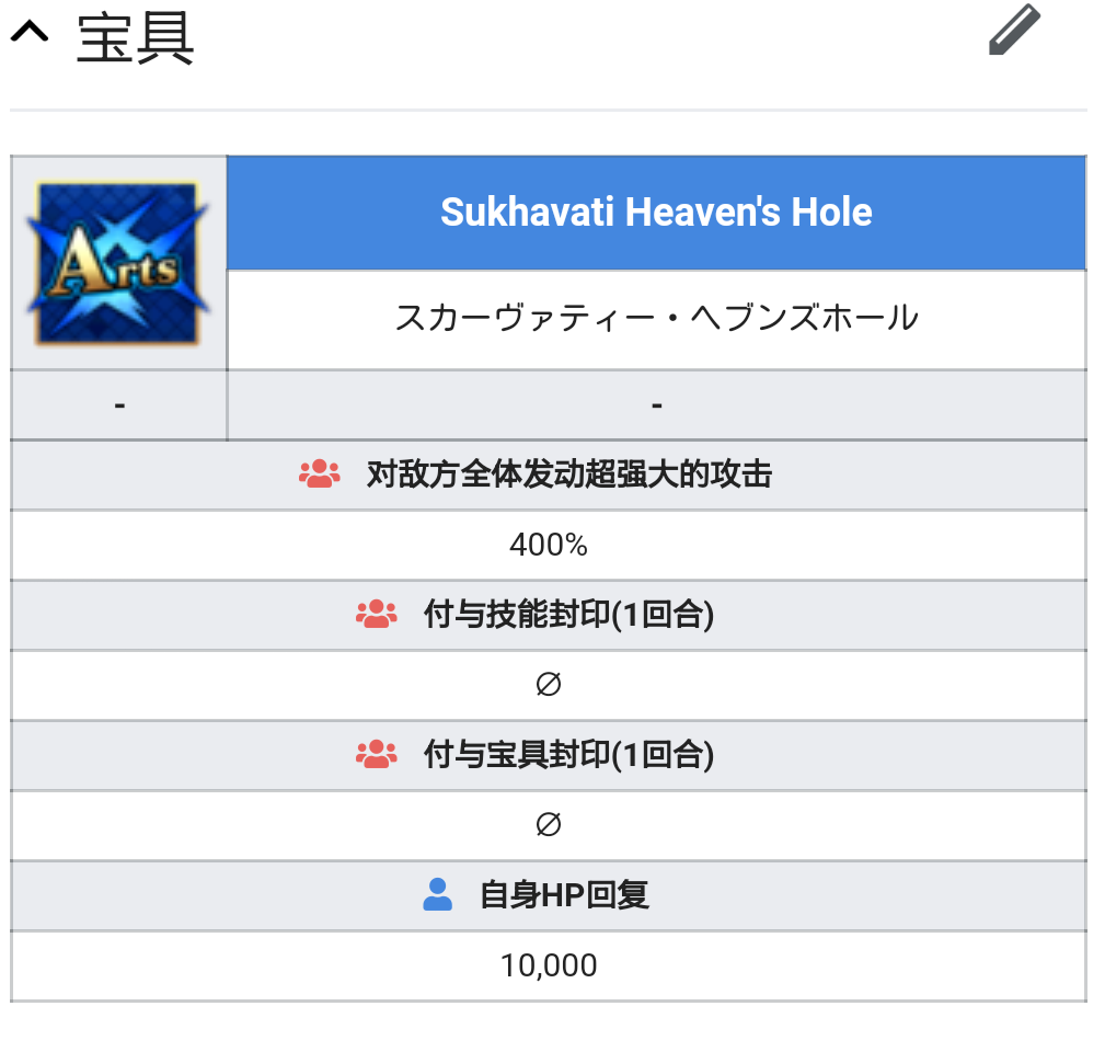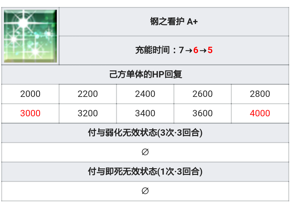 回合结束时敌方全体的弱化状态耐性下降10%&自身宝具威力提升400%(1次)