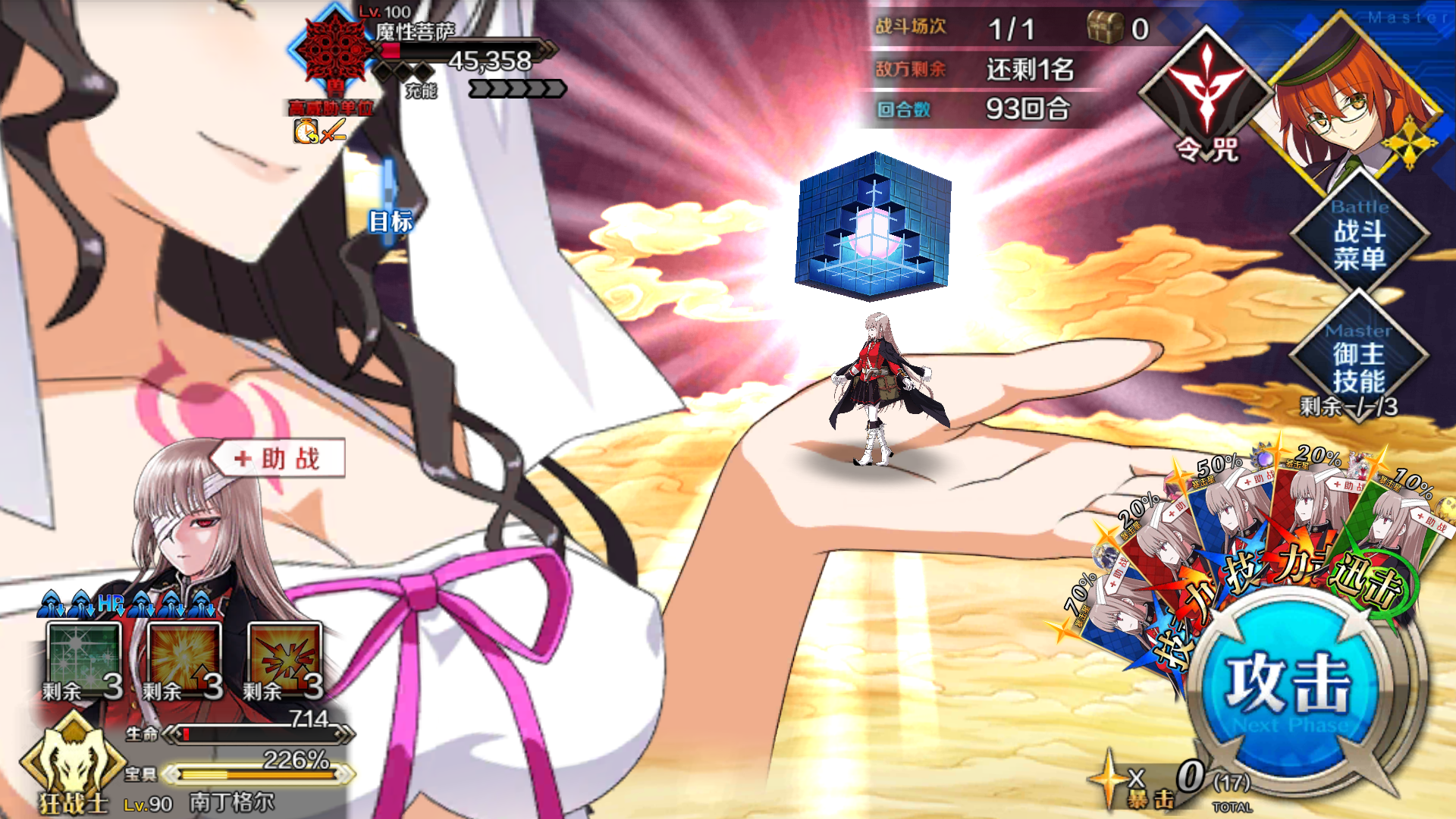 攻略作业配备:好友助战万圣玉藻猫礼装满配南丁一个(纹章不是硬性,有纹章提高容错率)