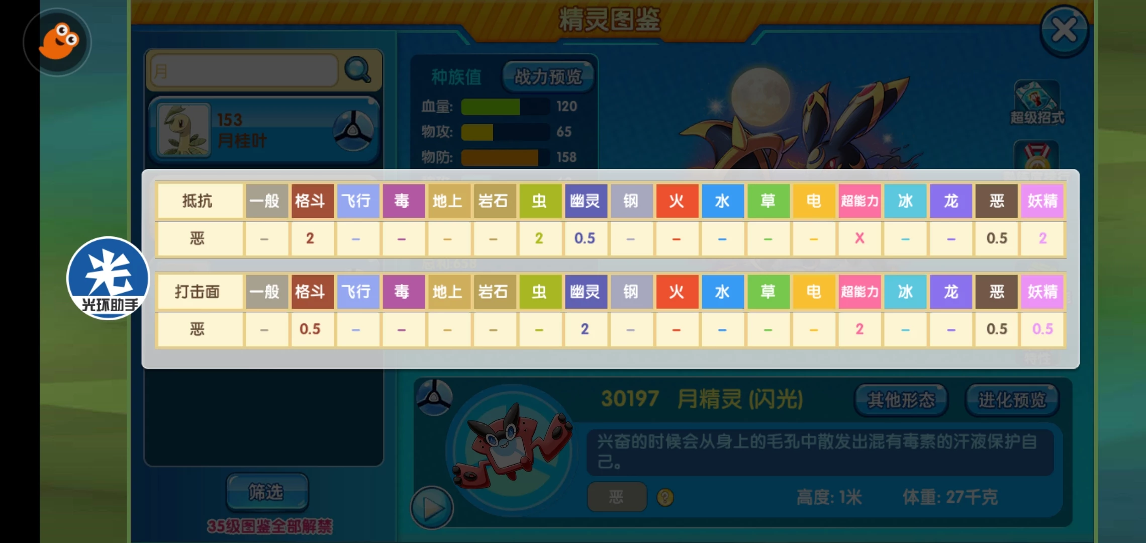 月精灵拥有120的血量种族,双抗也是达到158和180。肉度真的是没得说,要是不暗削。那真的是很多宠都打不疼,没有明显弱项,攻击65,这说明什么?千万不能吃Z神大招啊,速度75,属于慢速了。