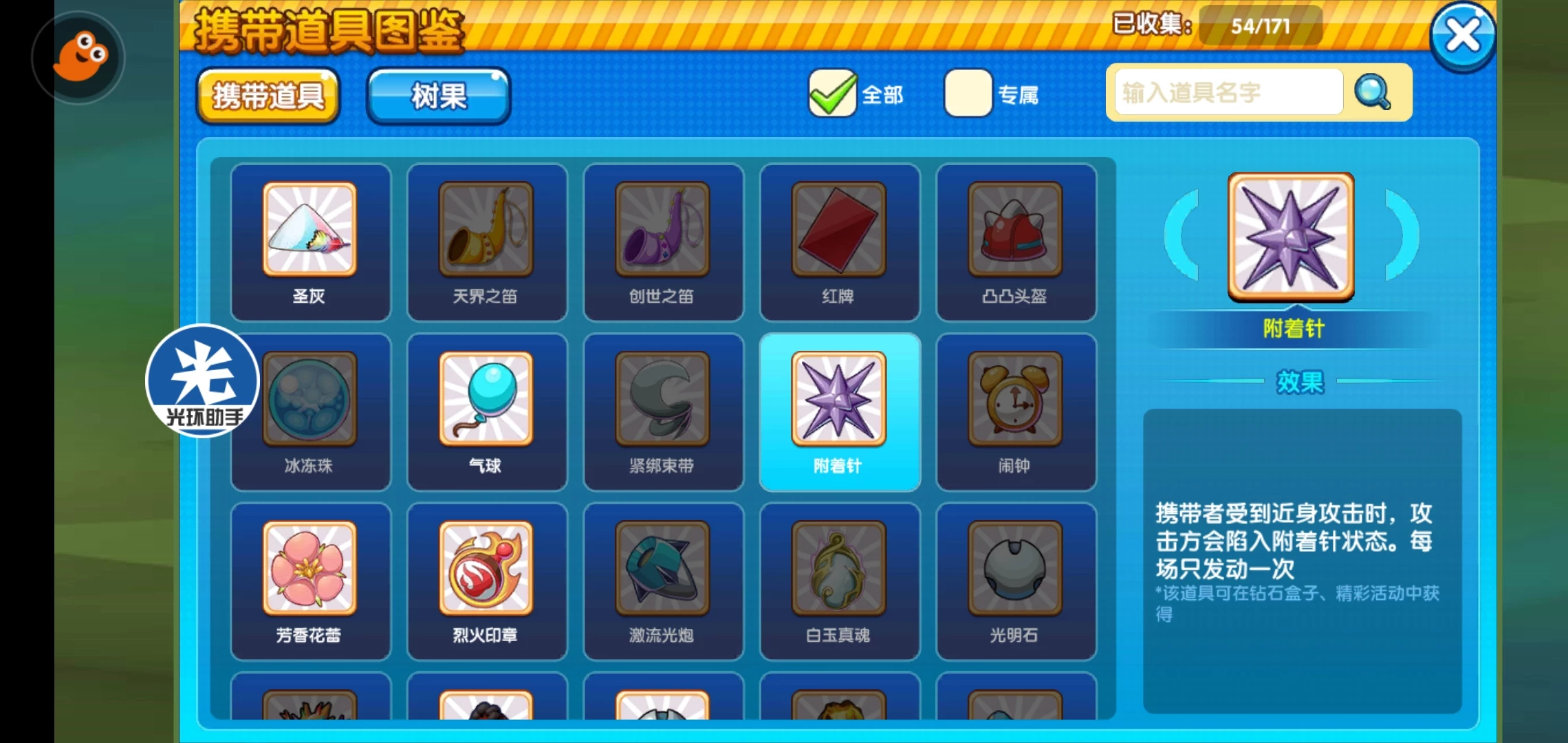 它的携带物很多,剩饭、凹凸头盔、附着针、三级头、道具魔术胶都可以选择,我推荐有条件的玩家以后带个道具魔术胶,这样不光可以增加物防,还能防落拳了,没条件的就带个剩饭附着针凑合,也是非常好用。