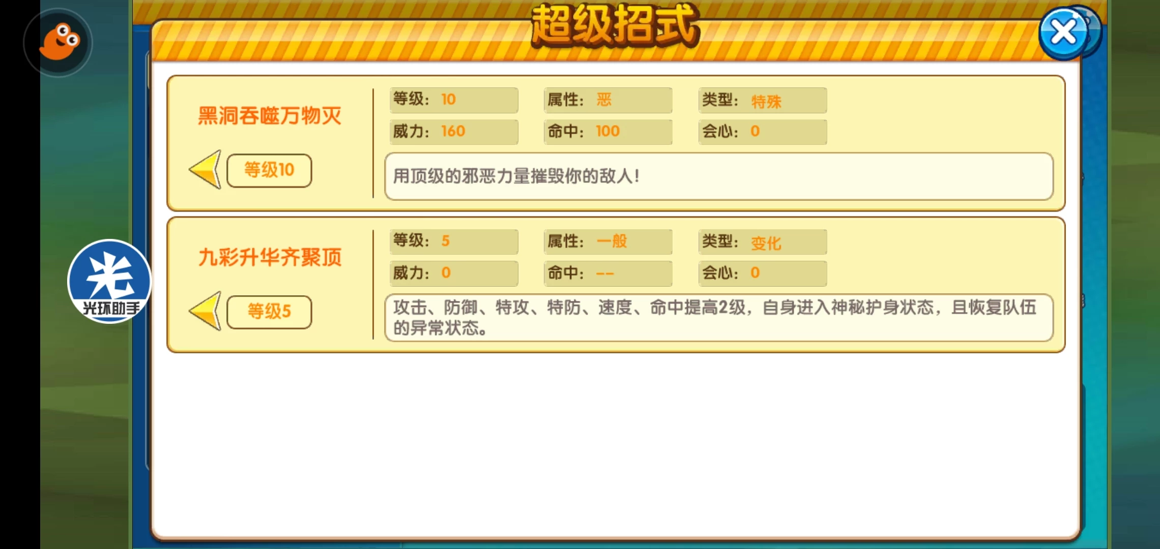 攻击、防御、特攻、特防、速度、命中提高2级,自身进入神秘护身状态,且恢复队伍