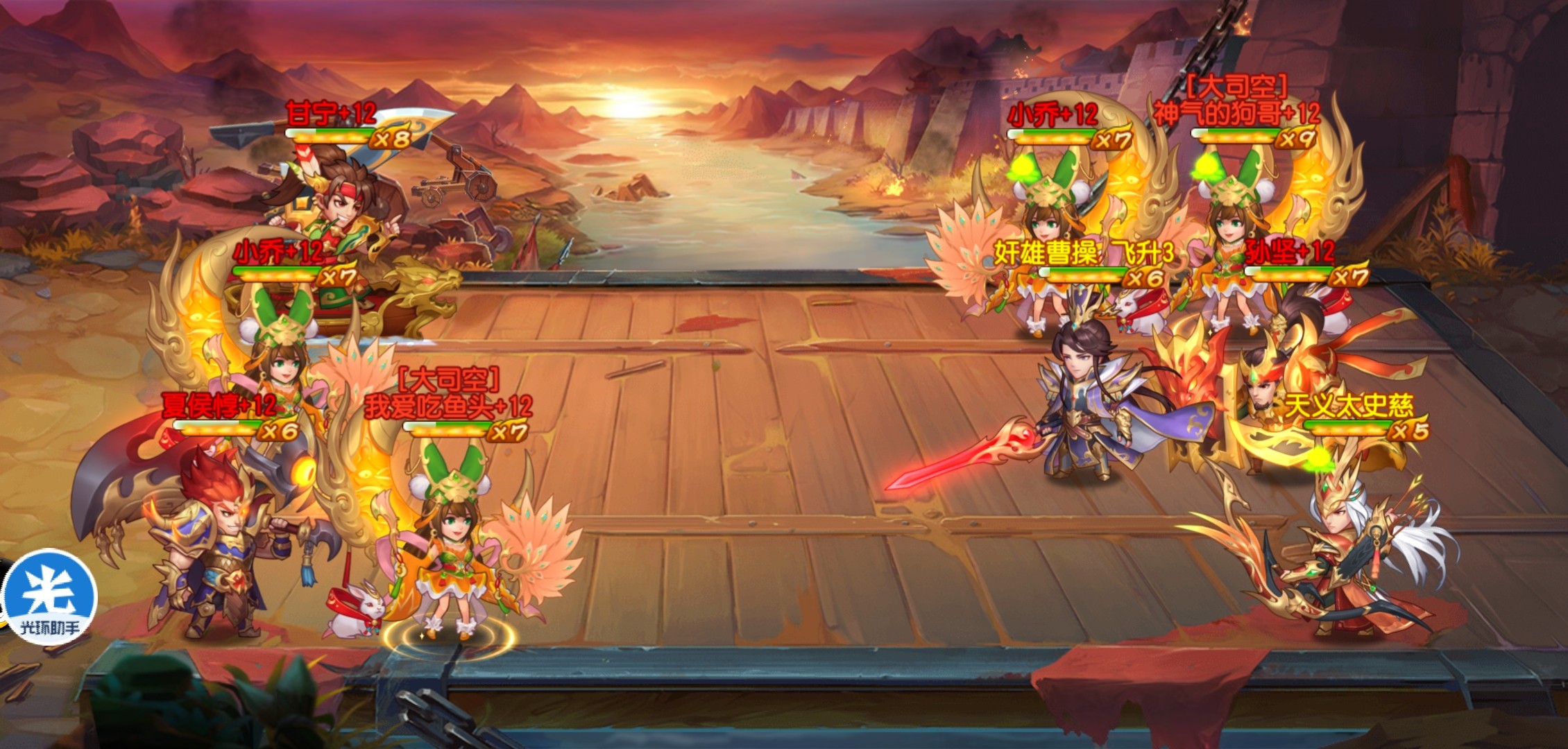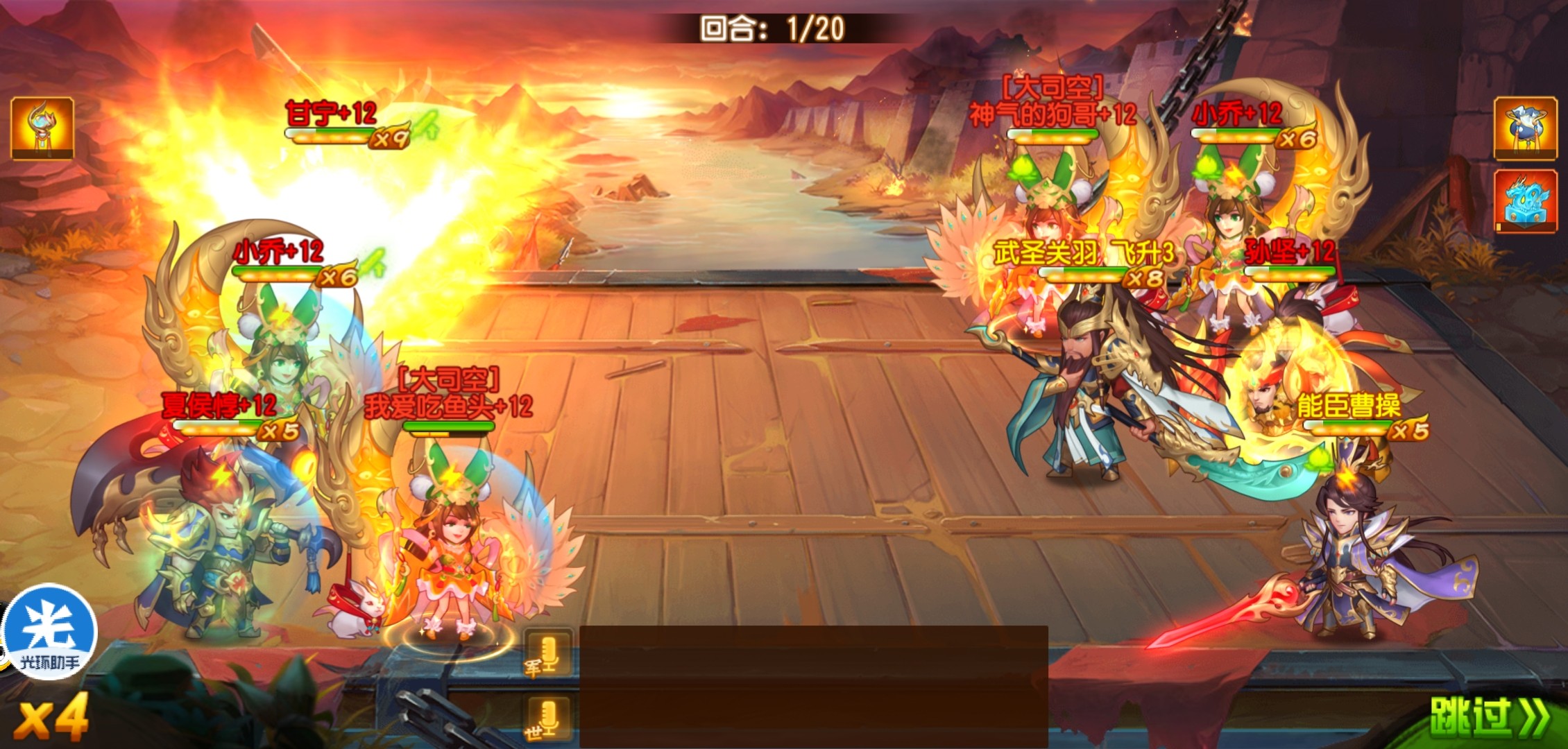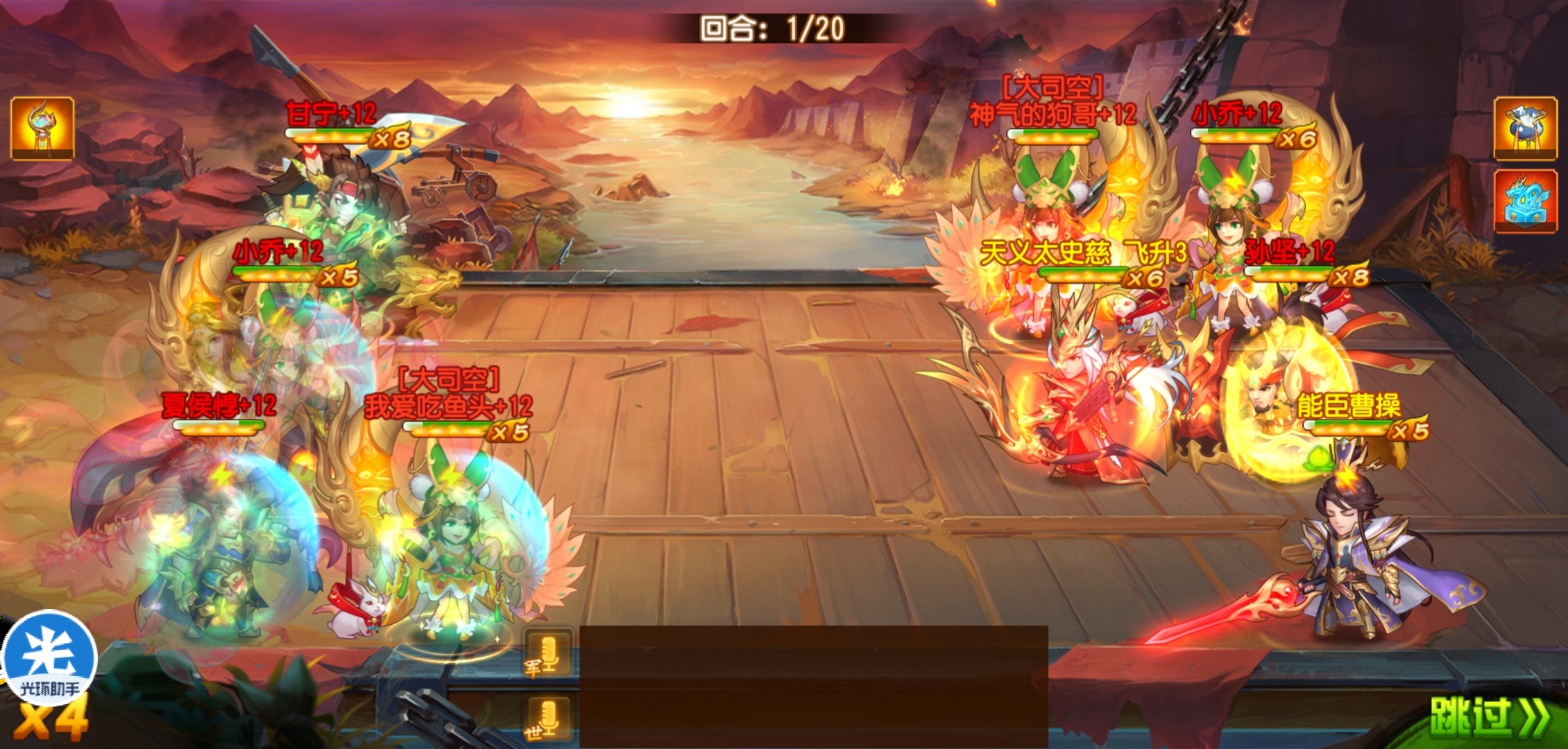 飞3武圣关羽配合能臣曹操,没有飞升的能臣曹操在该阵容中几乎没有发挥出作用,就只能起到回怒的作用。