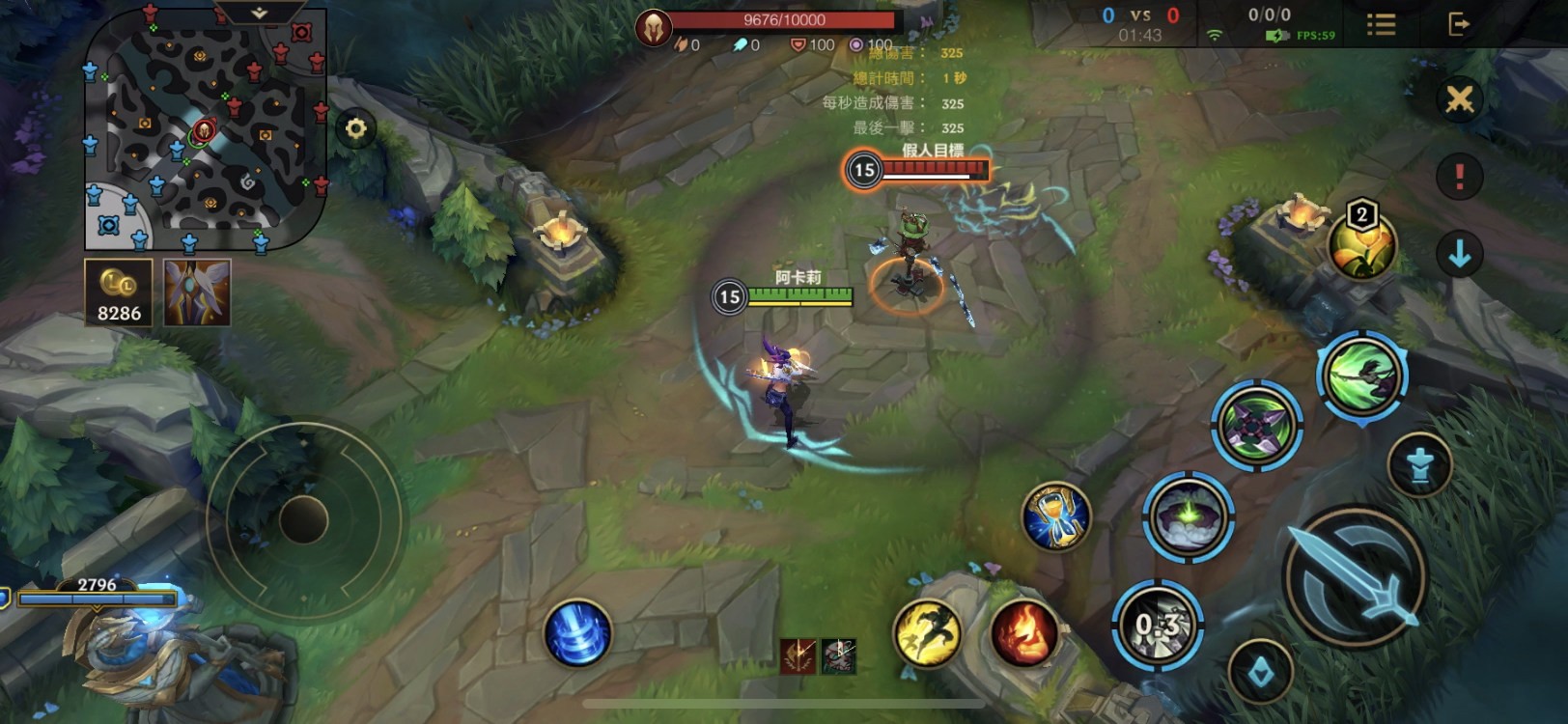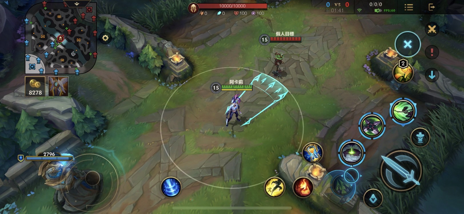 本人我平時主要玩中路,少數會配到單人線。阿卡莉中路基本上就是走位特訓班,應該說手短打手長的角色練就一身風騷走位,前期可以比較輕鬆度過。