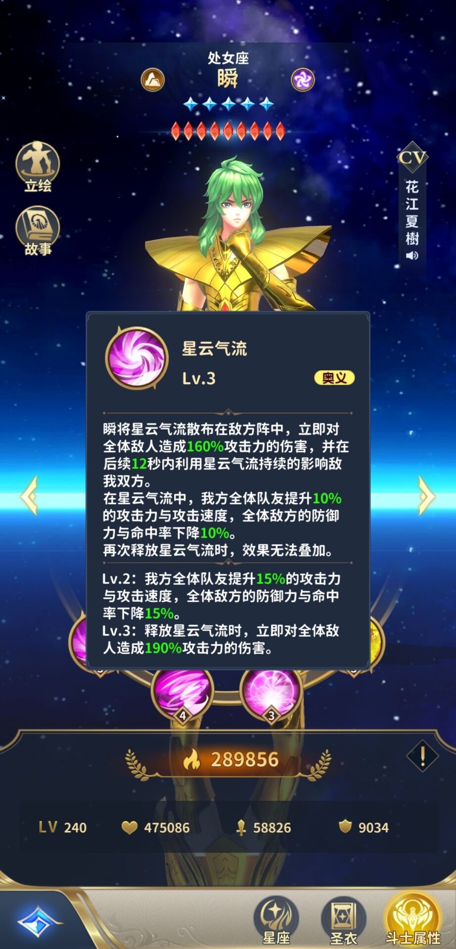 〔奥义会释放星云气流笼罩敌方全队,如果是满级圣衣,开局就能释放奥义〕
