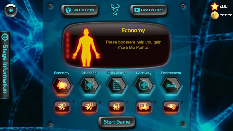 在《瘟疫公司》里面,可以选择各种病毒散布全世界,但是在《生化公司》里面虽然没有各种病毒,但是它有12种不同等级的关卡,每种关卡都用不种状态的人来代替,最初级的关卡就是不健康级别病人不仅,御宅,喜欢吃零食还抽烟,这种人群自然是最容易攻破免疫系统的