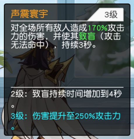 c. 我们再来看下一专属武器,随着专属武器等级提升未来会有50%的概率,普攻致盲一人,打两下就能致盲对方2秒,对方都没机会出手,变态不?