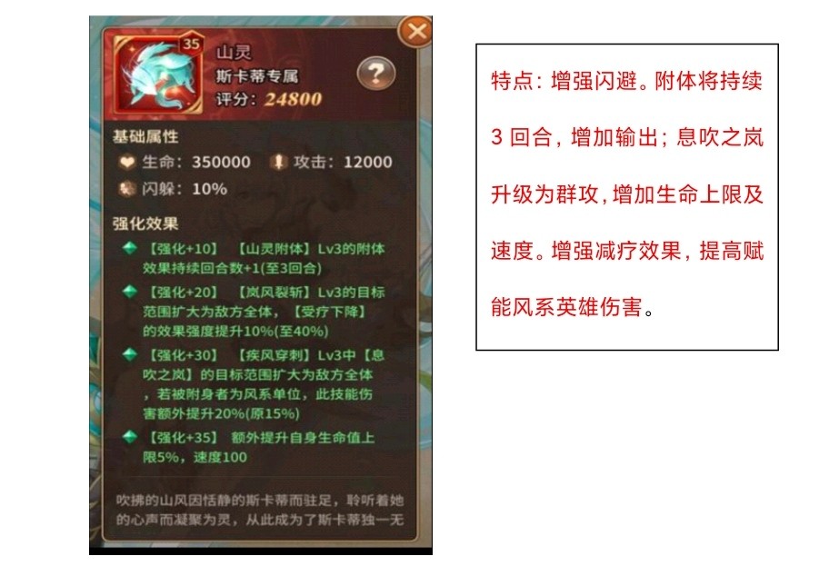 当附体英雄存在时,山灵追击替换为【息吹之岚】,追击目标由前方单位变为中前方单位。