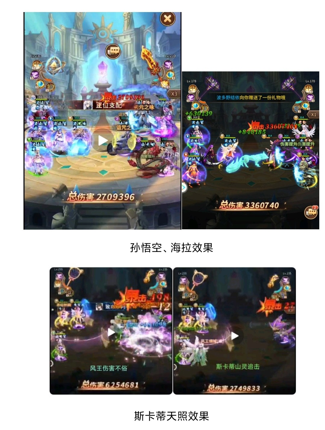 第二回合:女娲把狼加血加永生,熊猫回血,斯卡蒂大招群攻,然后狼物连一次,最后回合末,山灵用狼叠的很多的攻击进行群攻。