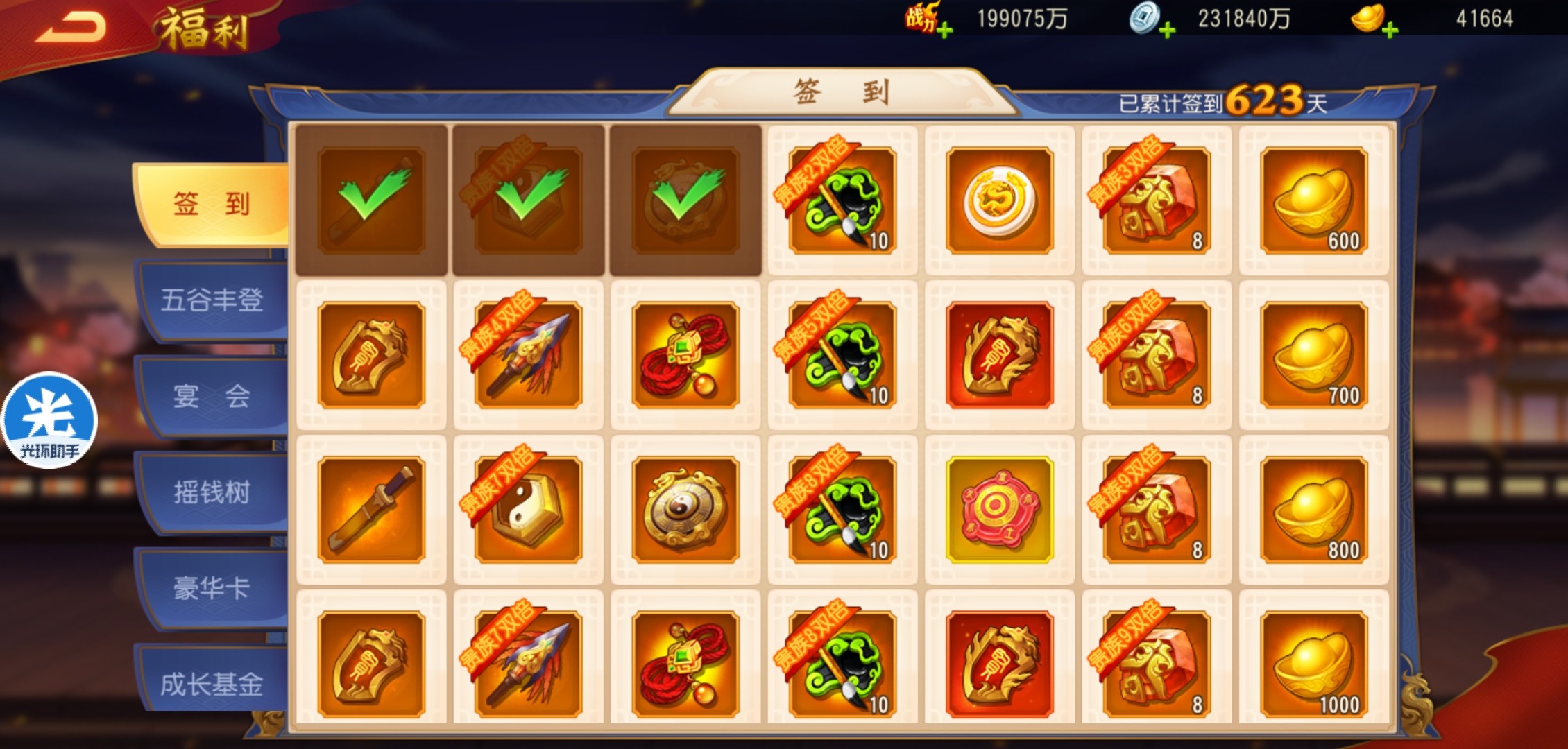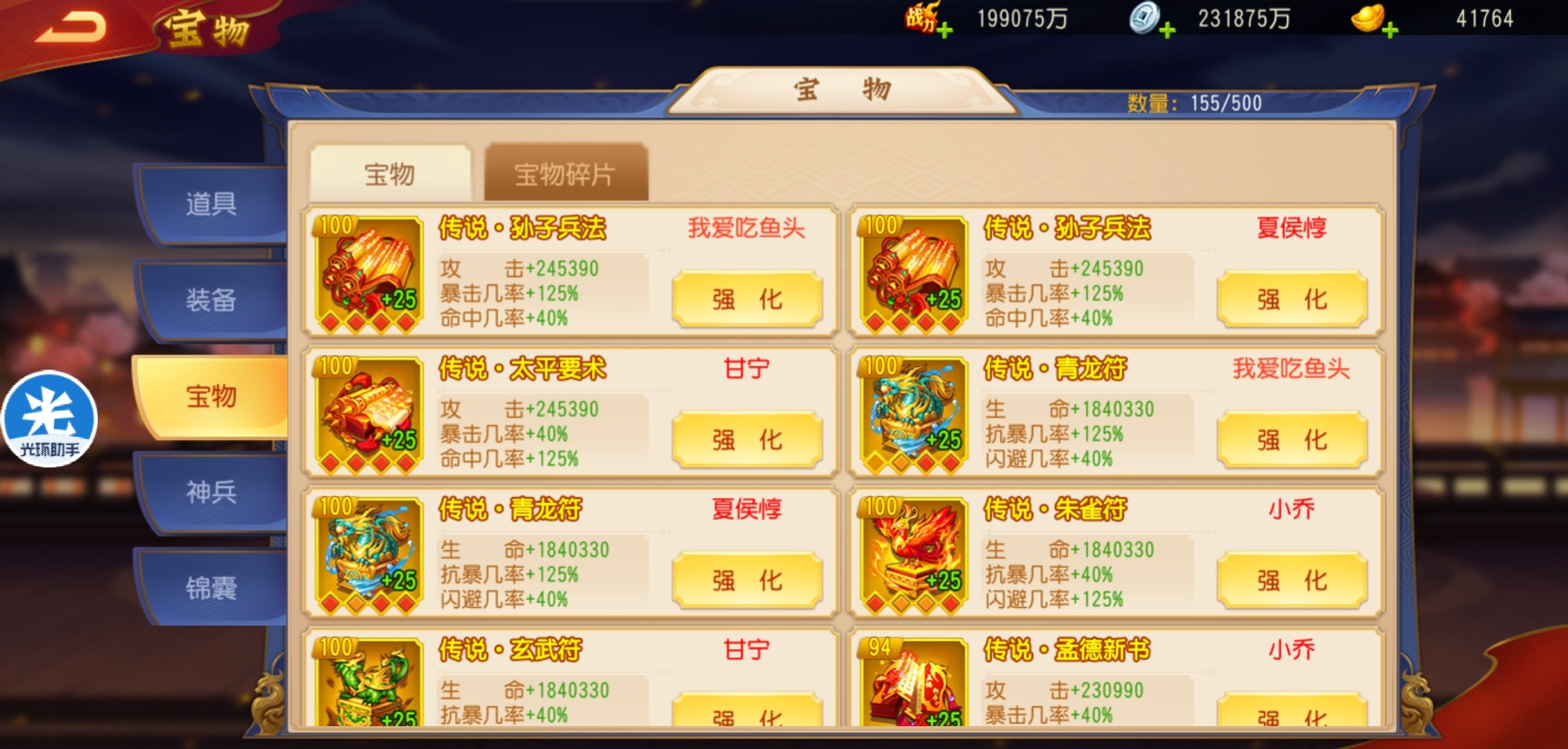 到了600天,精炼宝物的砚台资源远远不够,所以平民玩家需要多注意收集。