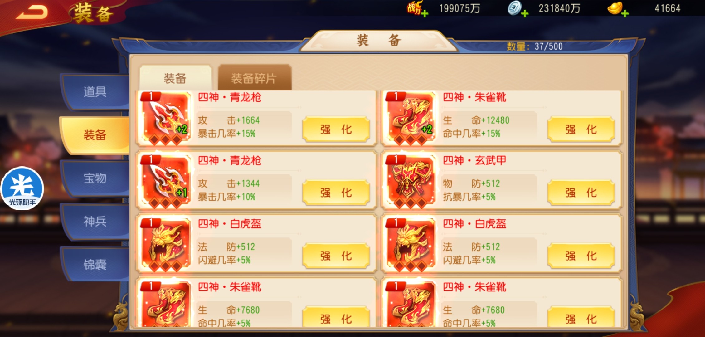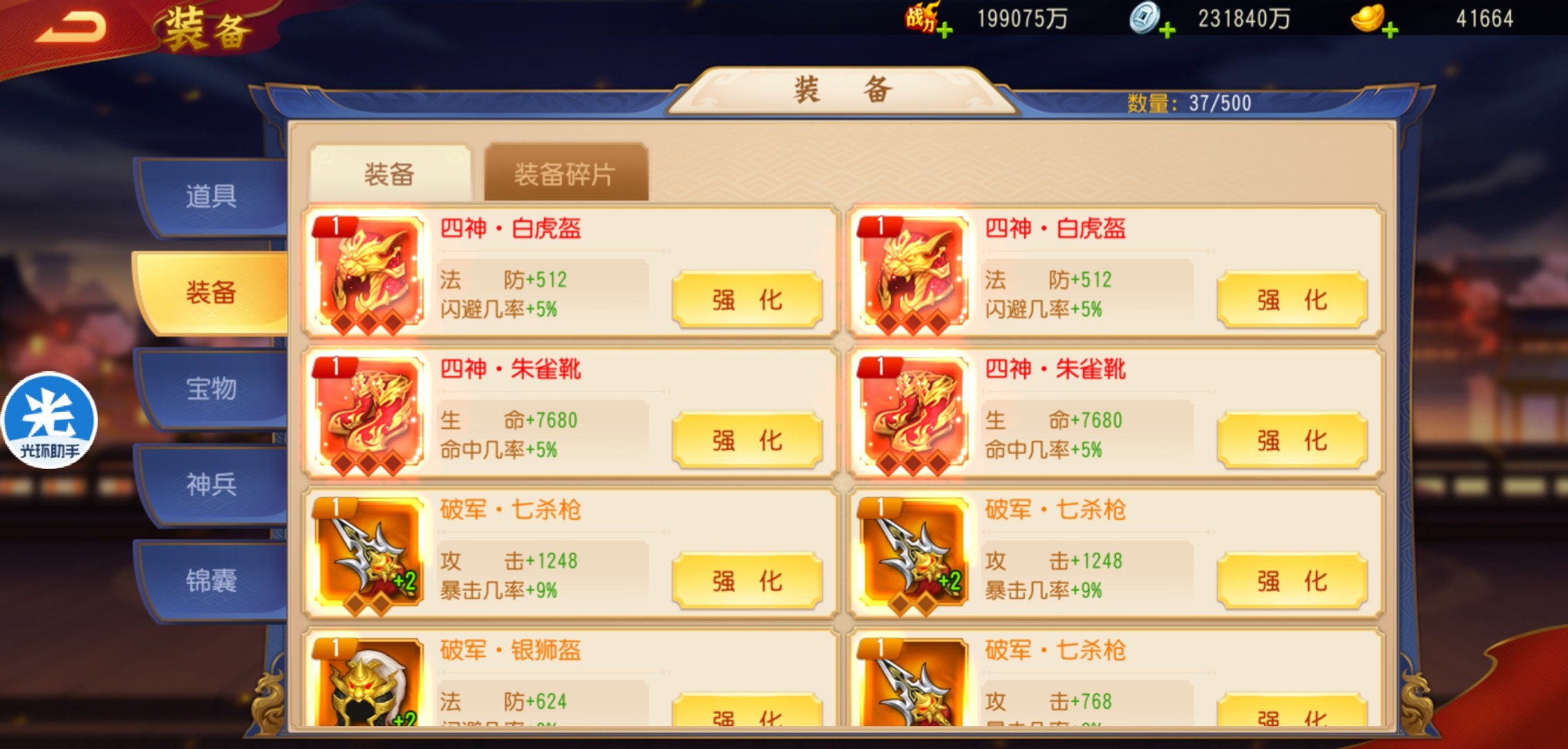 如果只是四人阵容,后期破军装备、四神装备也开始溢出,如果是多人阵,装备会吃紧一些。