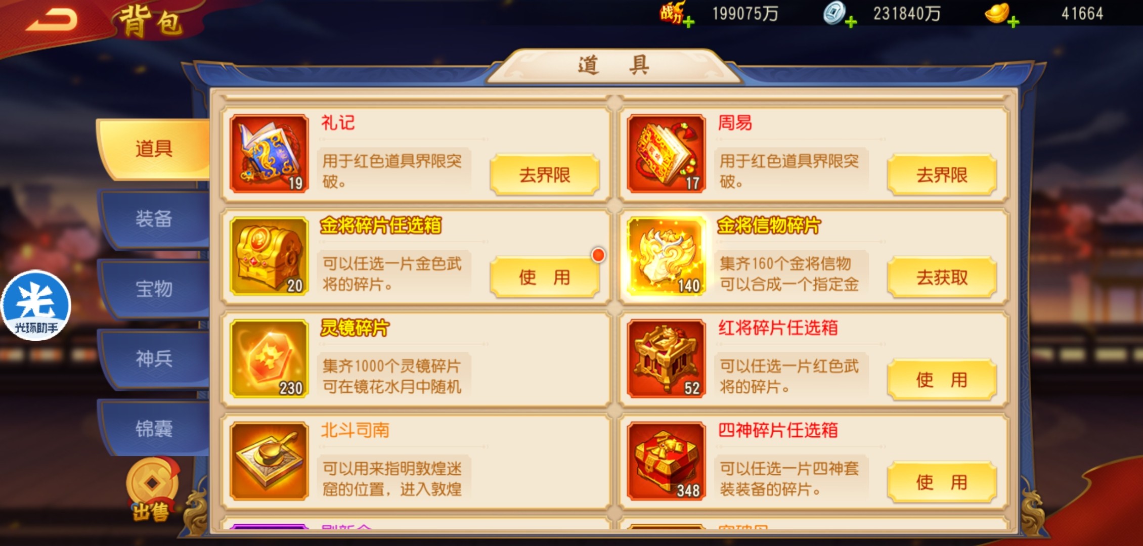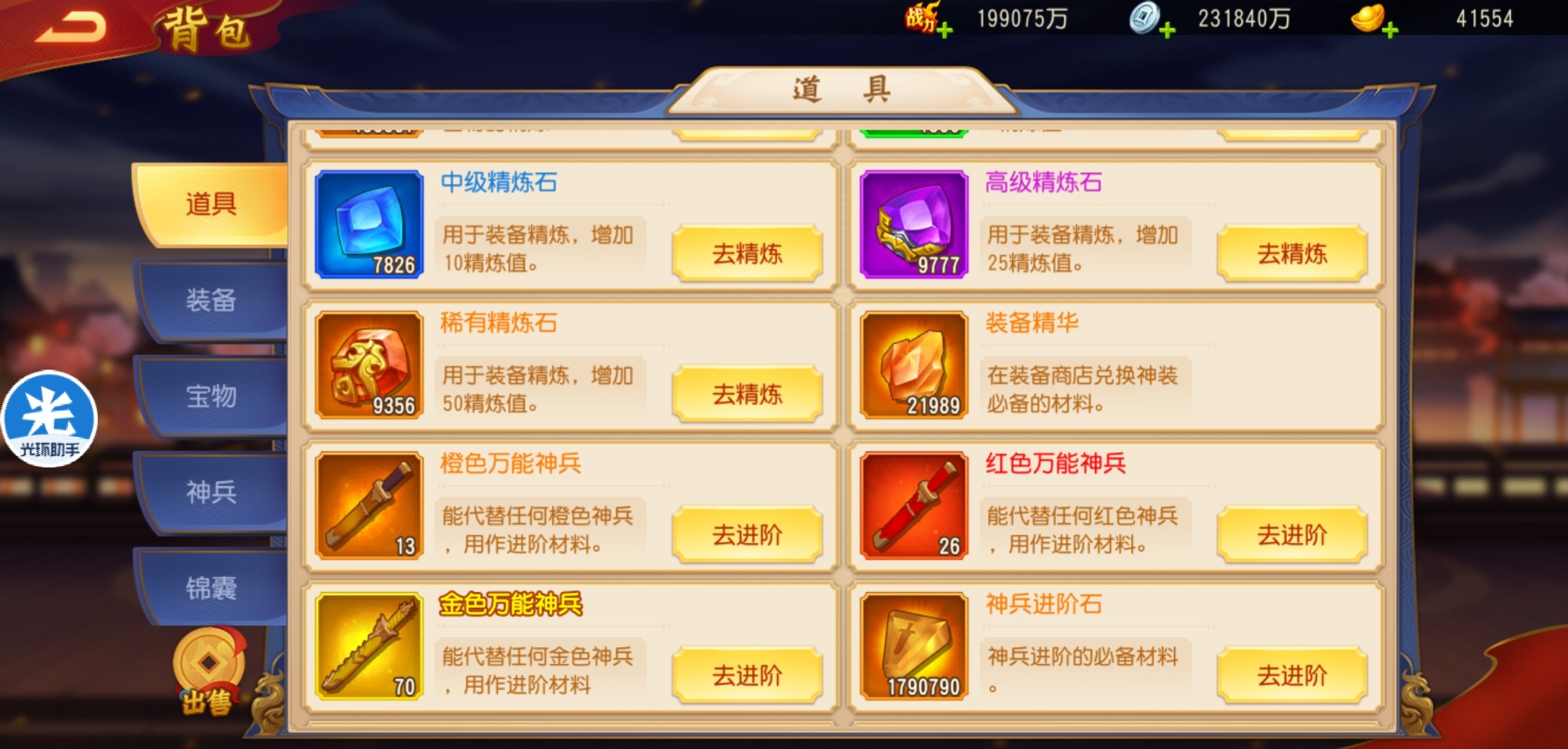 当宝物不够时,可以多消耗精力丹游历,获得宝物资源。