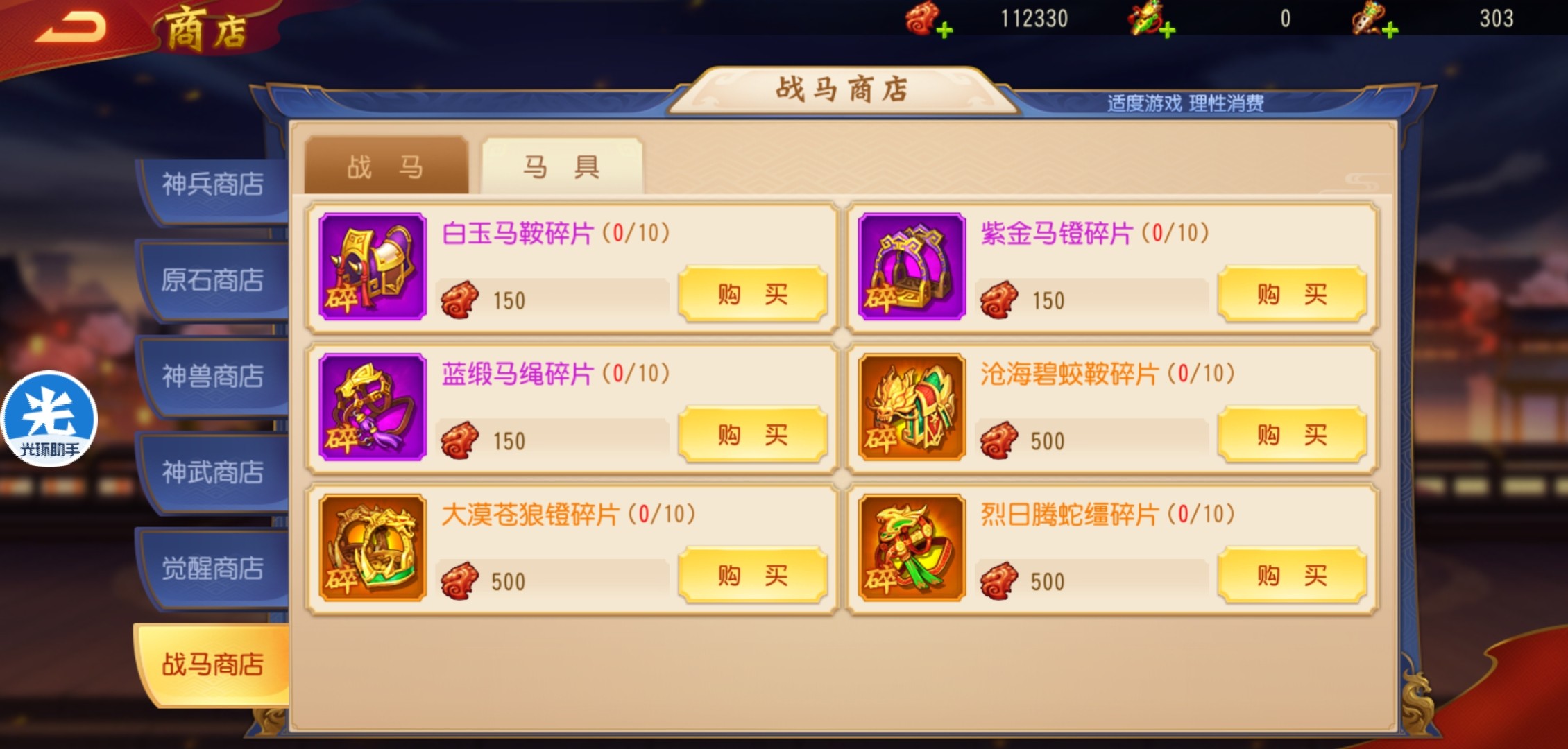 无论是马魂还是战马都会溢出,前期最需要的战马就是攻击武将的乌云踏雪,可以直接在战马商店购买到。一定不要在驯马活动中抽商店可以兑换的战马,后期的驯马哨子溢出几百个。