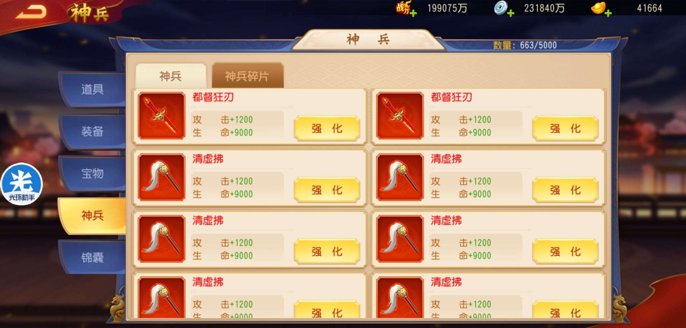 按道理说神兵是不应该溢出的,可随着金将的出现,橙色武将及红色武将的使用越来越少,所以橙色红色神兵就开始大量溢出了。