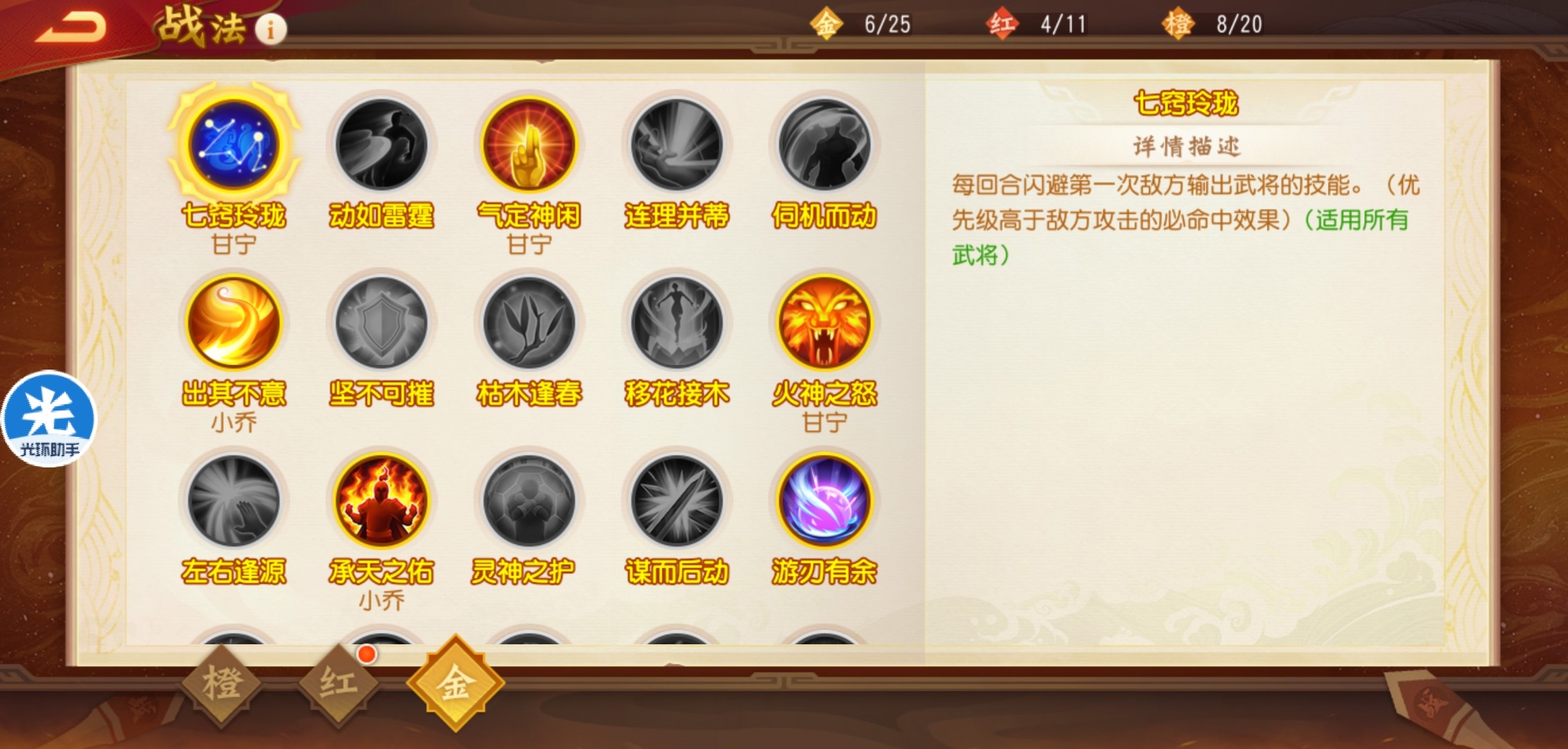 因为战法槽有限,到了后期橙色战法、红色战法基本都是闲置状态。