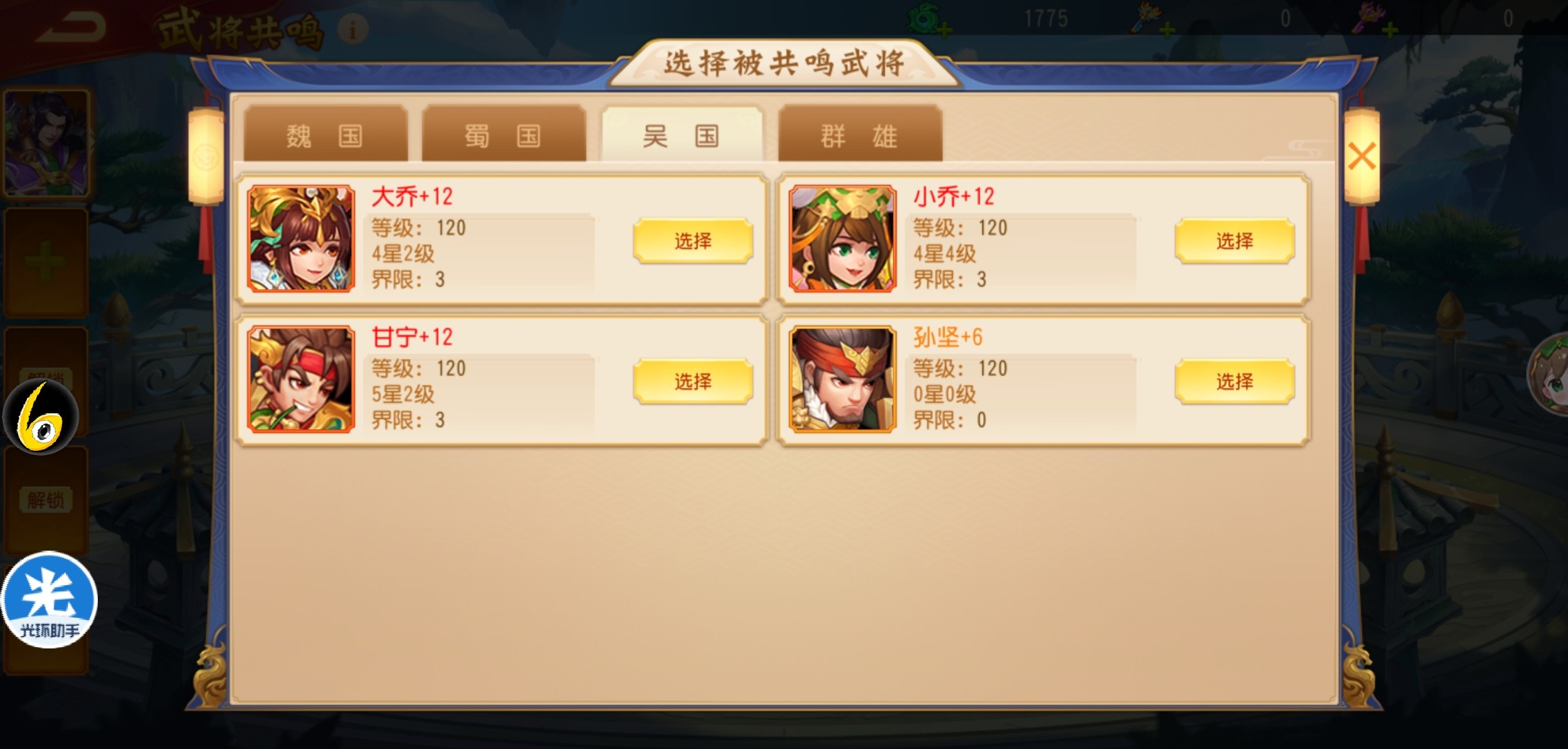 选择共鸣武将,首先得先拥有至少一个该武将,不能选择没有的武将作为共鸣武将。