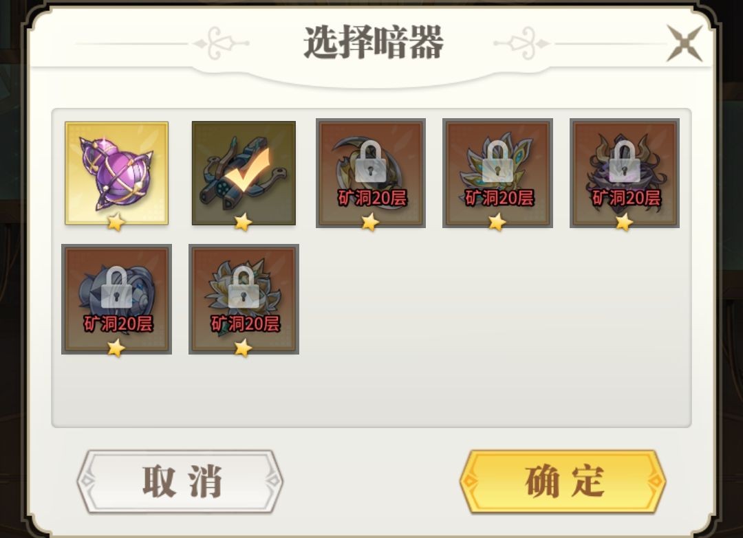 每次研发需要消耗能源核心,有一定的概率研发成功,获得强力暗器,若失败,仍可获得一份暗器材料,每次研发都会获得研发经验,研发经验已满时,下次研发必定获得指定暗器。(通过矿洞的挑战层数来决定研发暗器的稀有度,不同暗器消耗的研究经验也不同)