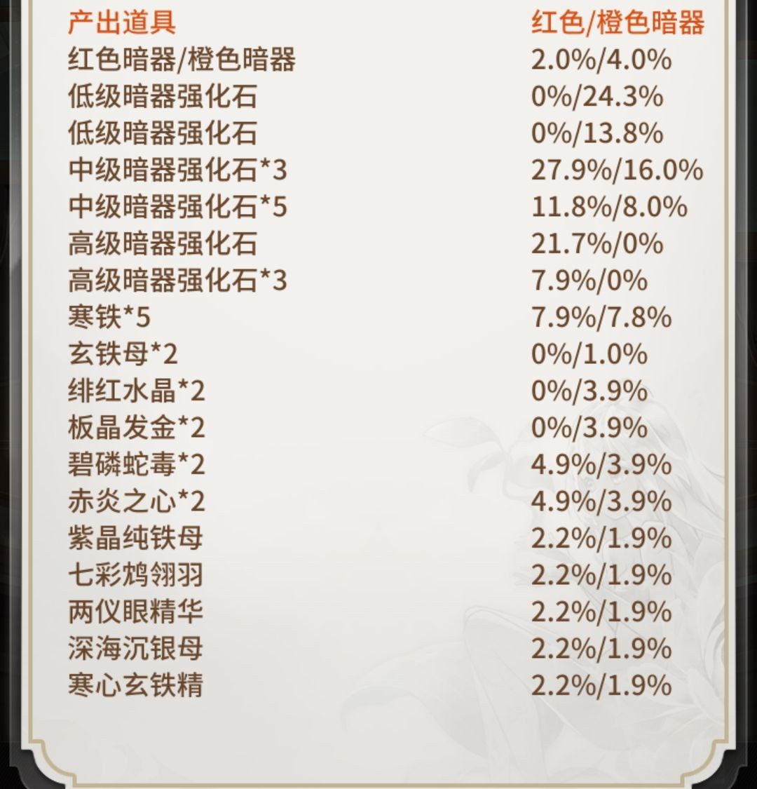 各类暗器强化石:根据暗器升级的需求来购买。