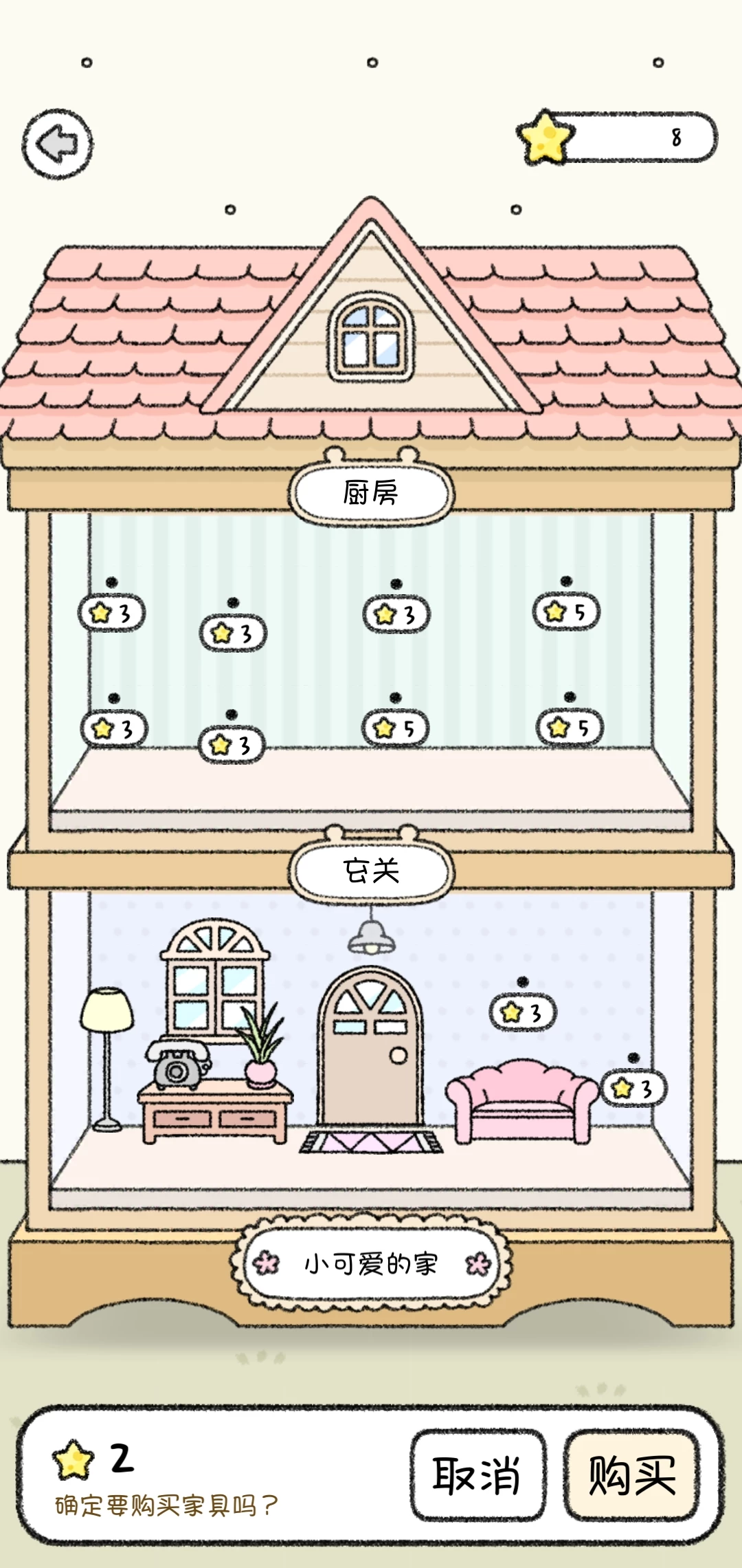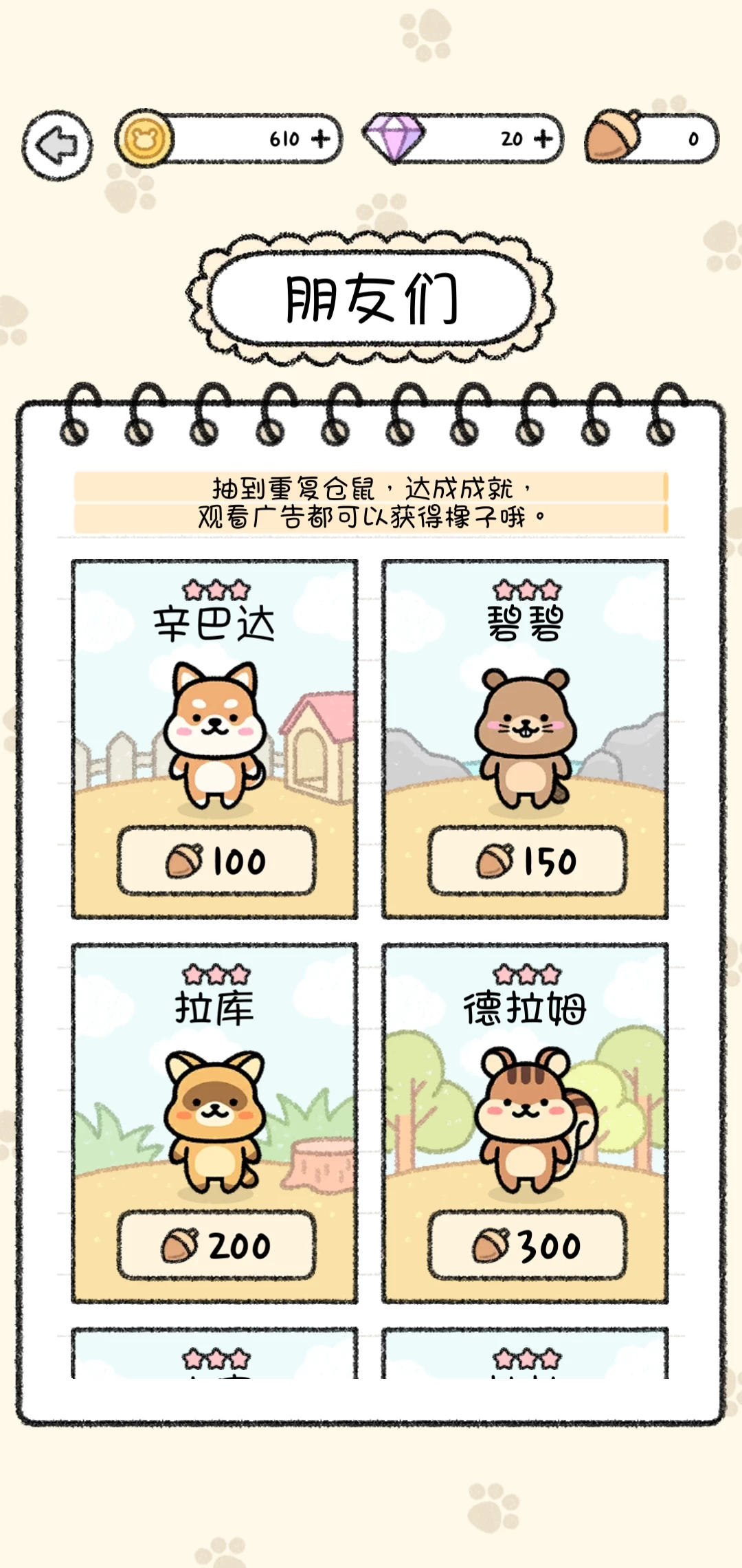 每一次完成一个关卡我们都会获得一定的金币跟星星作为奖励,而这些东西我们可以用来装点自己的仓鼠窝,比如说利用金币去购买一些新的小仓鼠,又比如说用星星购买一些新的家具来点缀让仓鼠小镇更有家的感觉。