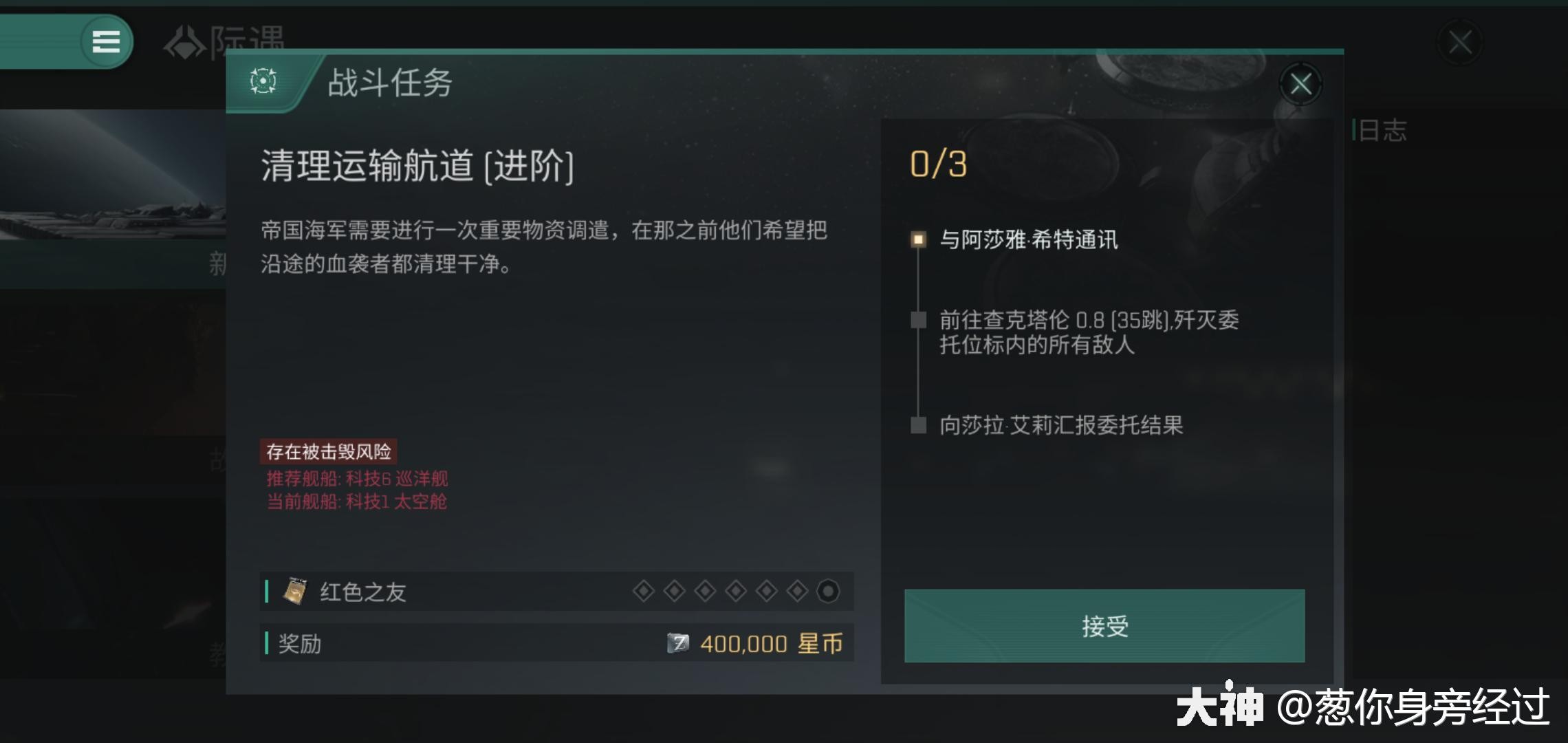 拥有同时期最高的赏金收益,更有附赠箱子,是帝国区人员生存的最佳选择,但T7之后不建议继续刷故事书,拥有探针的玩家海盗会轻易的抓住你的舰船。