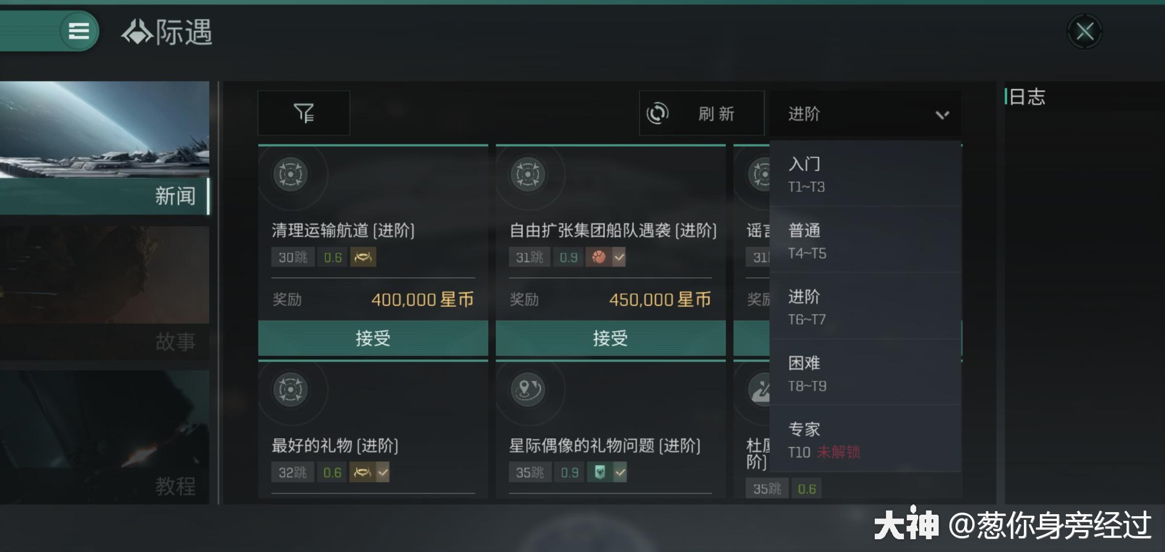 入门(t1-t3)普通t4-t5进阶t6-t7困难t8-t9专家t10际遇异常等级与对应的最低科技等级同级