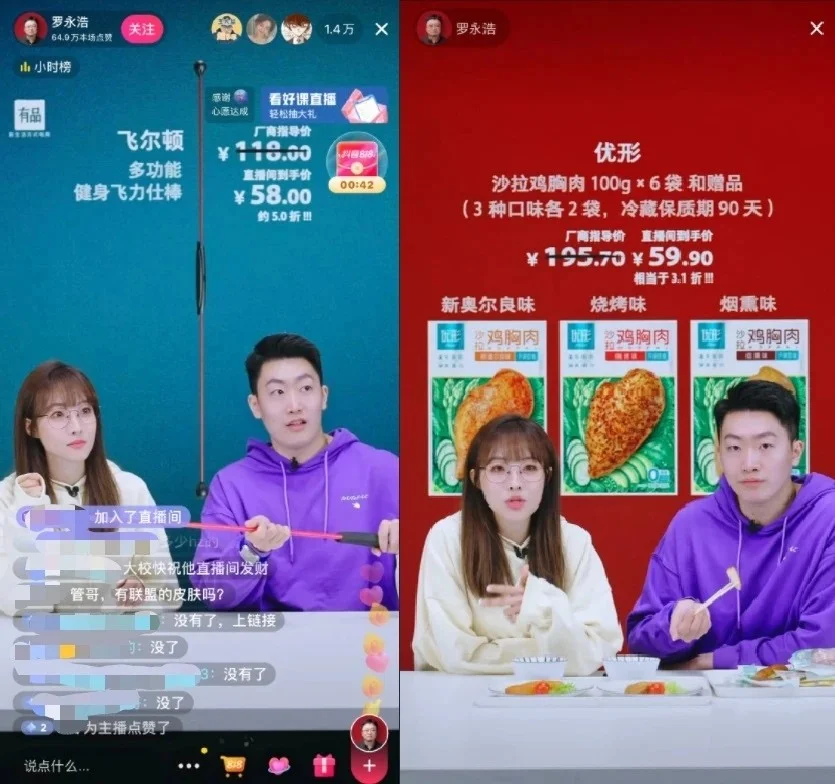 最近没有解说的任务,管哥也是清闲得跑到罗永浩直播间带起了货。