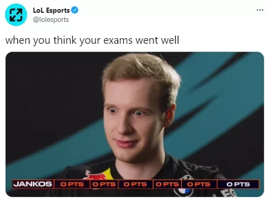 LoL Esports今日发推:当你以为自己的考试还算顺利时。