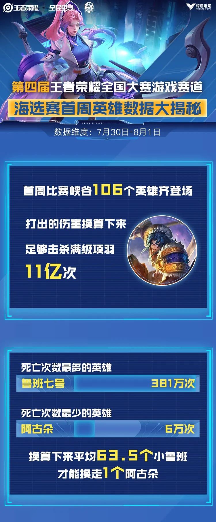 第四届王者荣耀全国大赛游戏赛道海选赛首周数据盘点来啦~