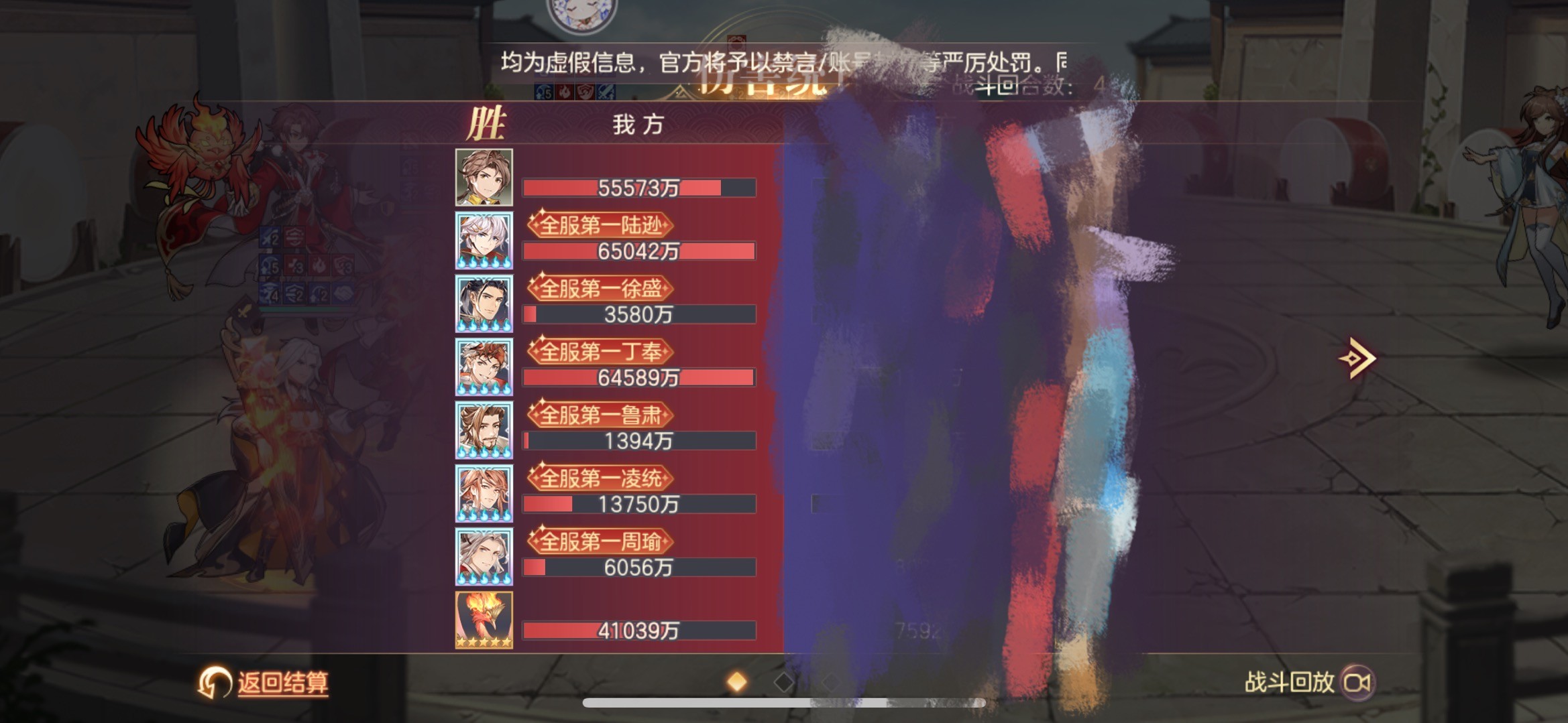 至于为什么结算面板不会太难看 多半是由于陆逊怒攻挂上的凌统灼烧被计入了陆逊的伤害(以此弥补了一点空缺 而这种情况下第一输出大概率会变成丁奉)