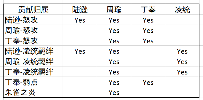 同样陆逊 周瑜 丁奉依靠凌统羁绊造成的伤害 也都将被分别归给陆逊 周瑜 丁奉 而凌统得到的评分是0