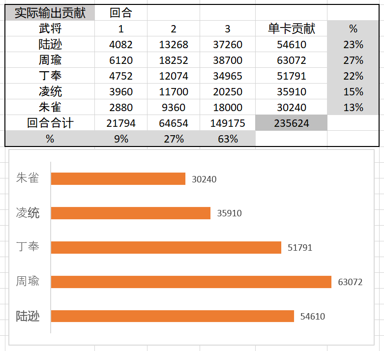 实际的输出贡献明显可以看到 周瑜变成了第一 而陆逊丁奉差不多在第二的位置