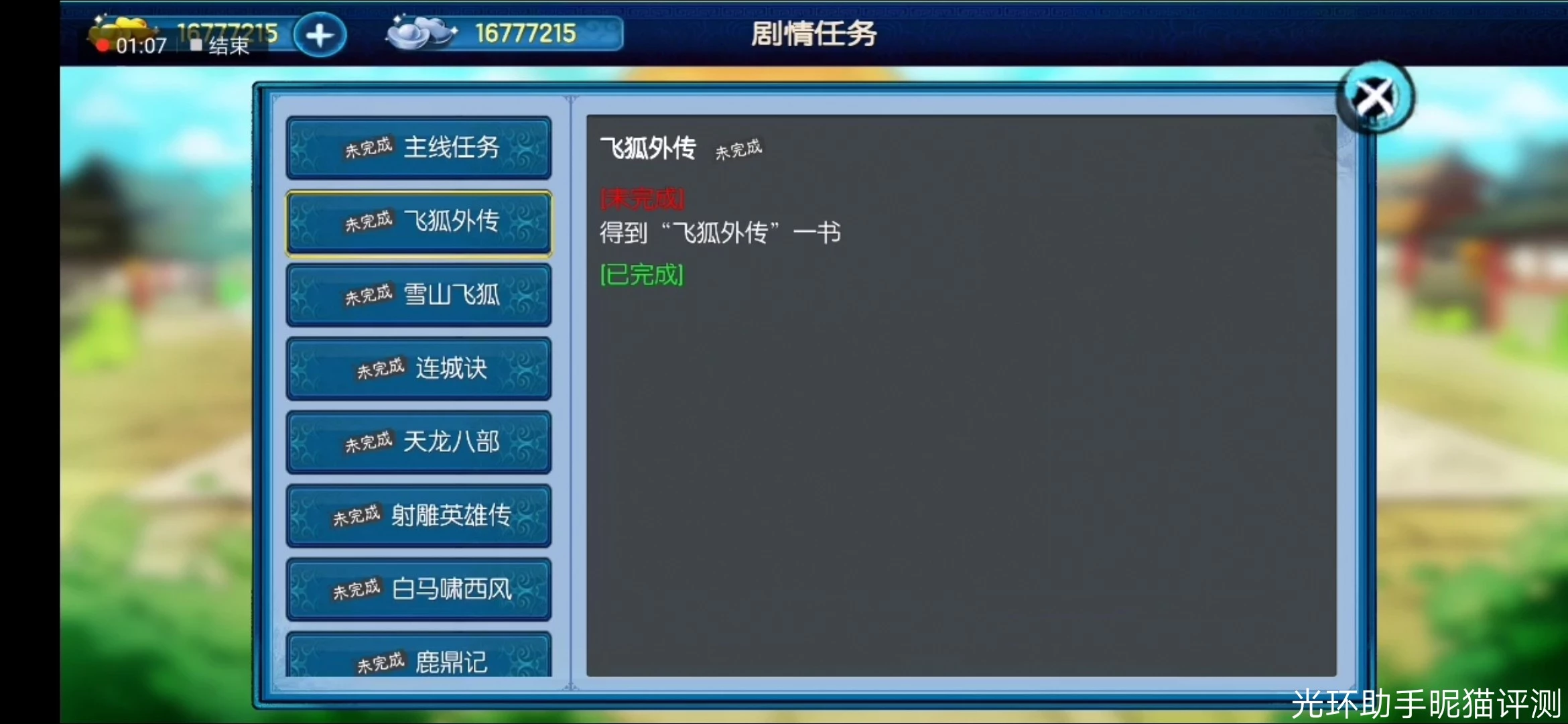 游戏主角是莫名其妙穿越到金庸世界的游戏刚开始有一个简单的教学,还会给你颁布一个主线任务,让你了解如何才能回到现实世界。