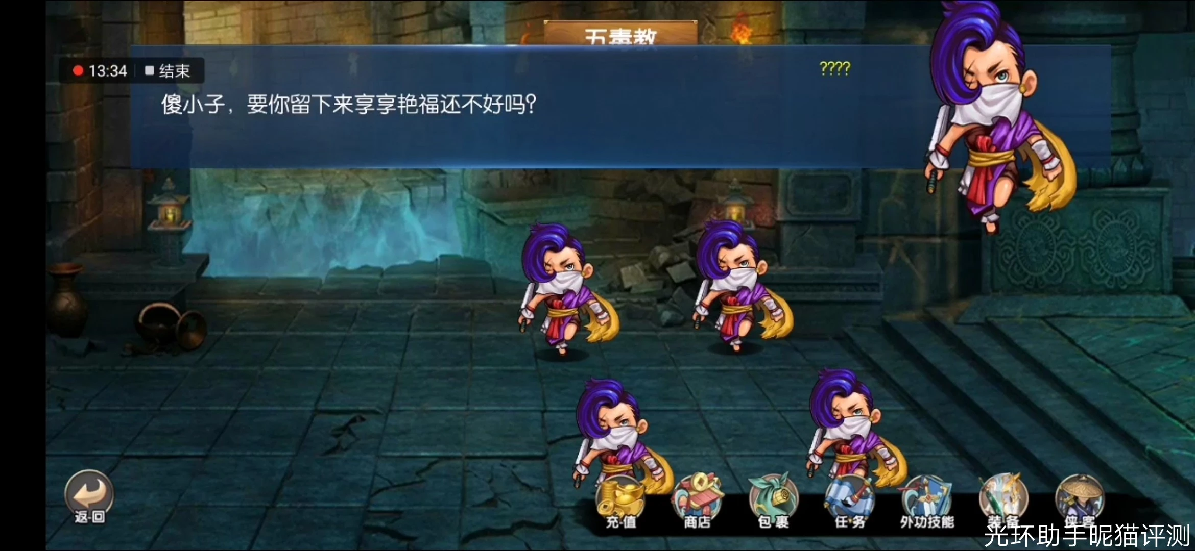 中肯评价:这个游戏的来源应该是是电脑上的经典的金庸群侠传(昵猫觉得是的),除了画面不同(游戏画面真的挺一般的),连里面的对话都是一样的,没有任何金群类MOD,貌似也不能加入门派,而且战斗动画奇慢无比还不能加速,游戏里有好多BUG,但是可以规避的(网上有攻略),规避开BUG再玩就可以了。昵猫建议没有玩过PC版金庸群侠传的玩家可以尝试一下。(耿直的笑脸)