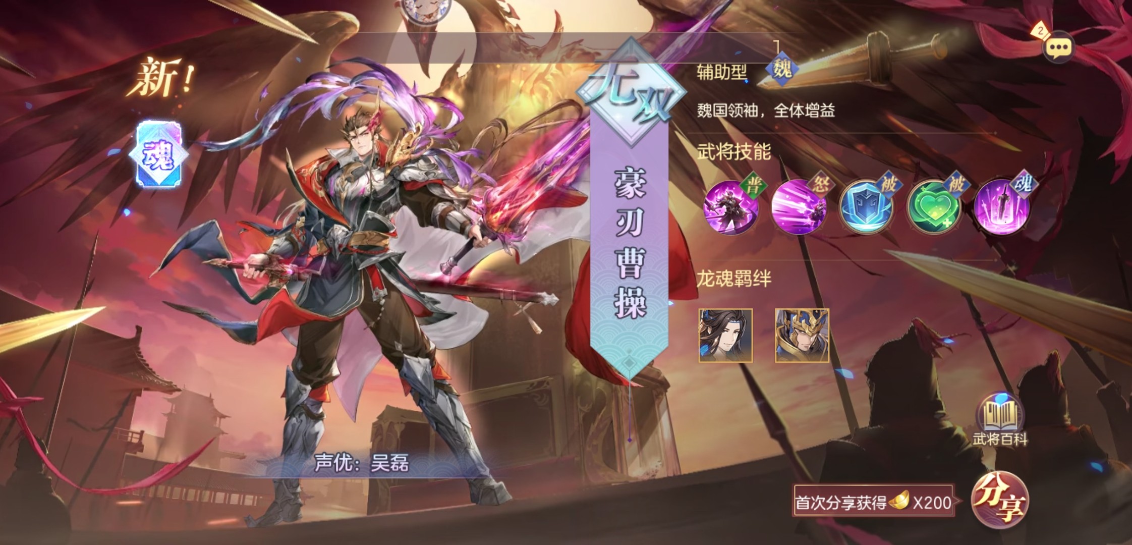 个人看法理论上 豪刃曹操的各种数值 词条设计都是偏全面的 缺陷也不是没有 只能说比老神将强度更高 这是必然的事情 后续已经推出了“龙魂之殿” 也就是魂将列传