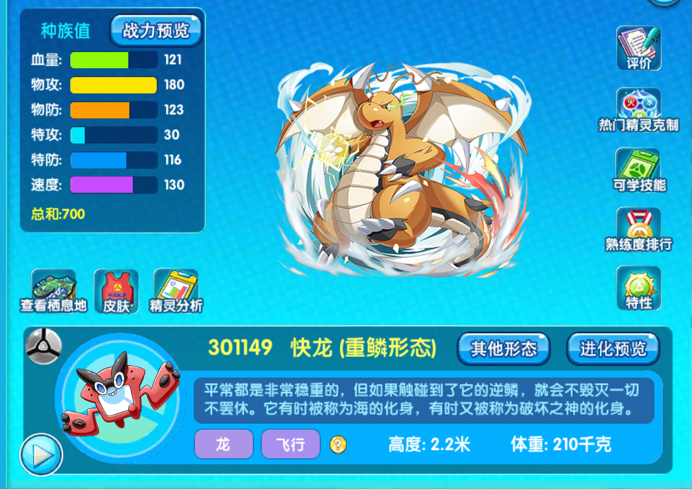 那么基本上这个精灵的介绍就到这里,暂时的结束了,下面就是另外一个平民精灵了,也是冷门了相当久的一段时间快龙-重鳞(龙+飞行)